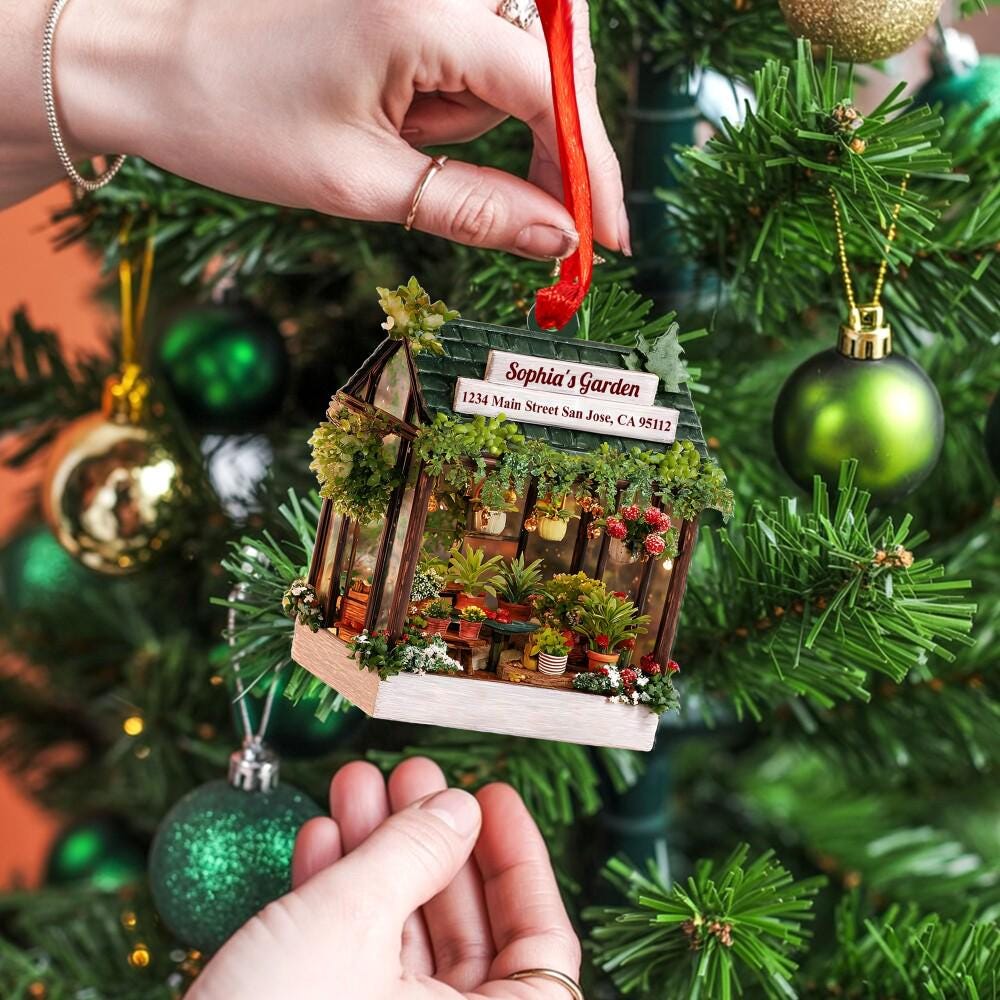 Personalized Garden House 2D Flat Ornament, Gardening Christmas Ornament, Christmas Gift for Gardener Plant Lovers