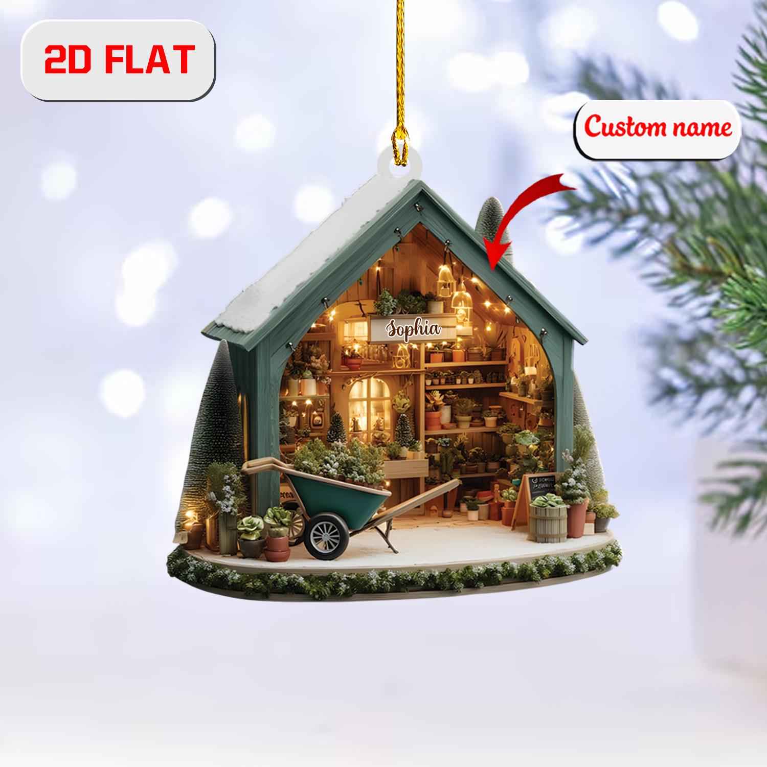Personalized Garden Shed Christmas Ornament, Custom Name Greenhouse Ornament, 2D Flat Acrylic Decoration, Unique Xmas Gift for Garden