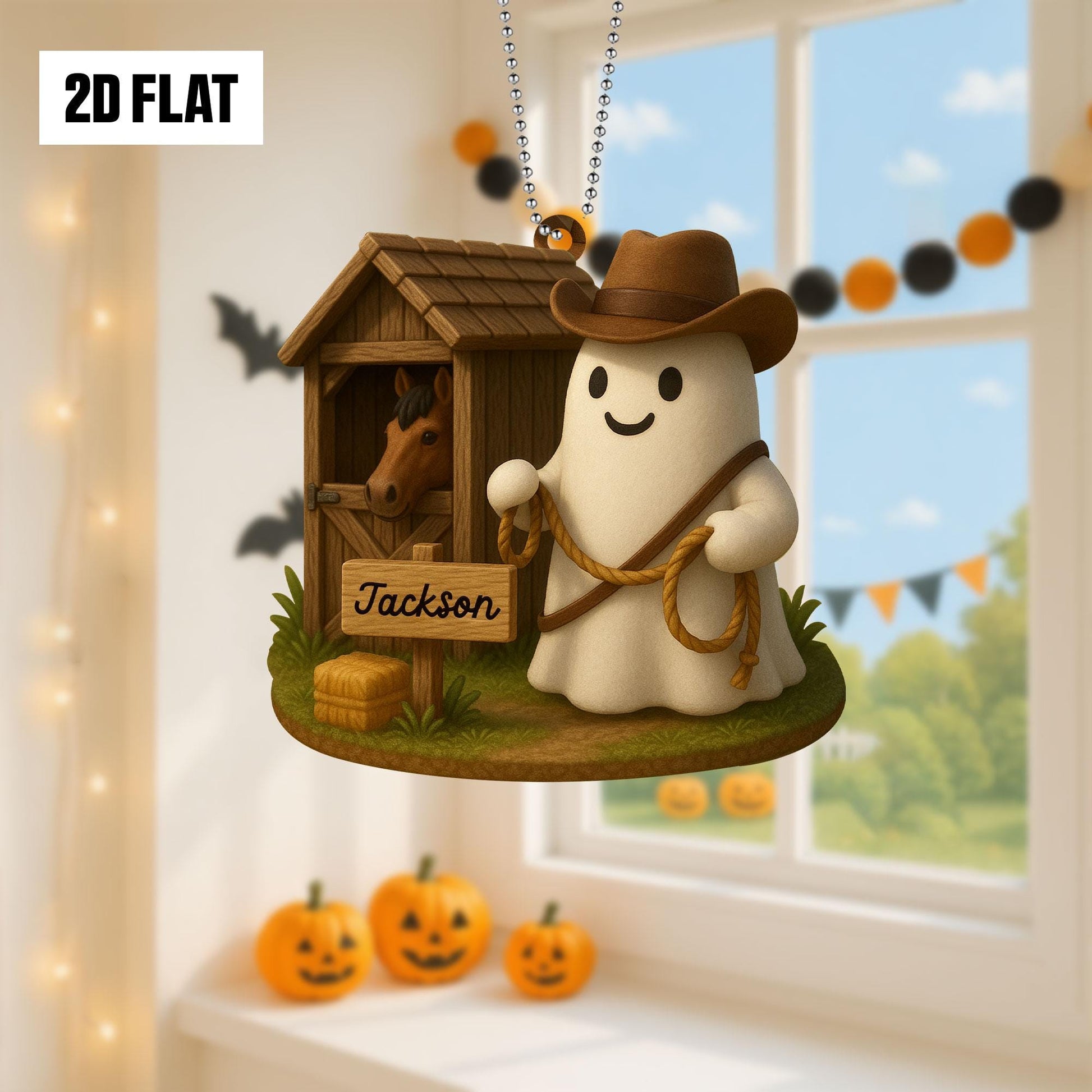 Personalized Ghost Cowboy 2D FLAT Acrylic Ornament, Cowboy Halloween Gift, Halloween Ornament for Cowboy, Cowgirl, Western Ornament Gift