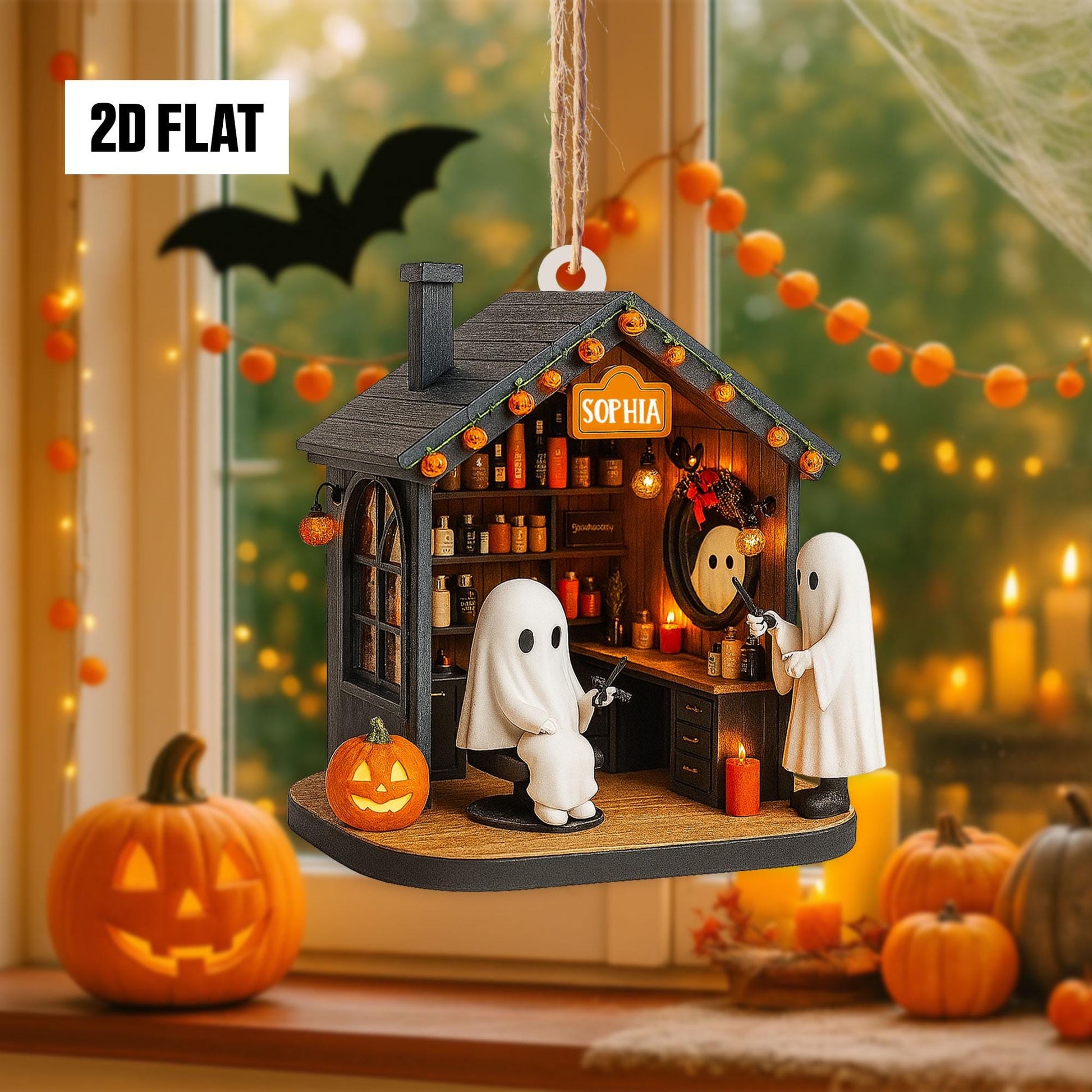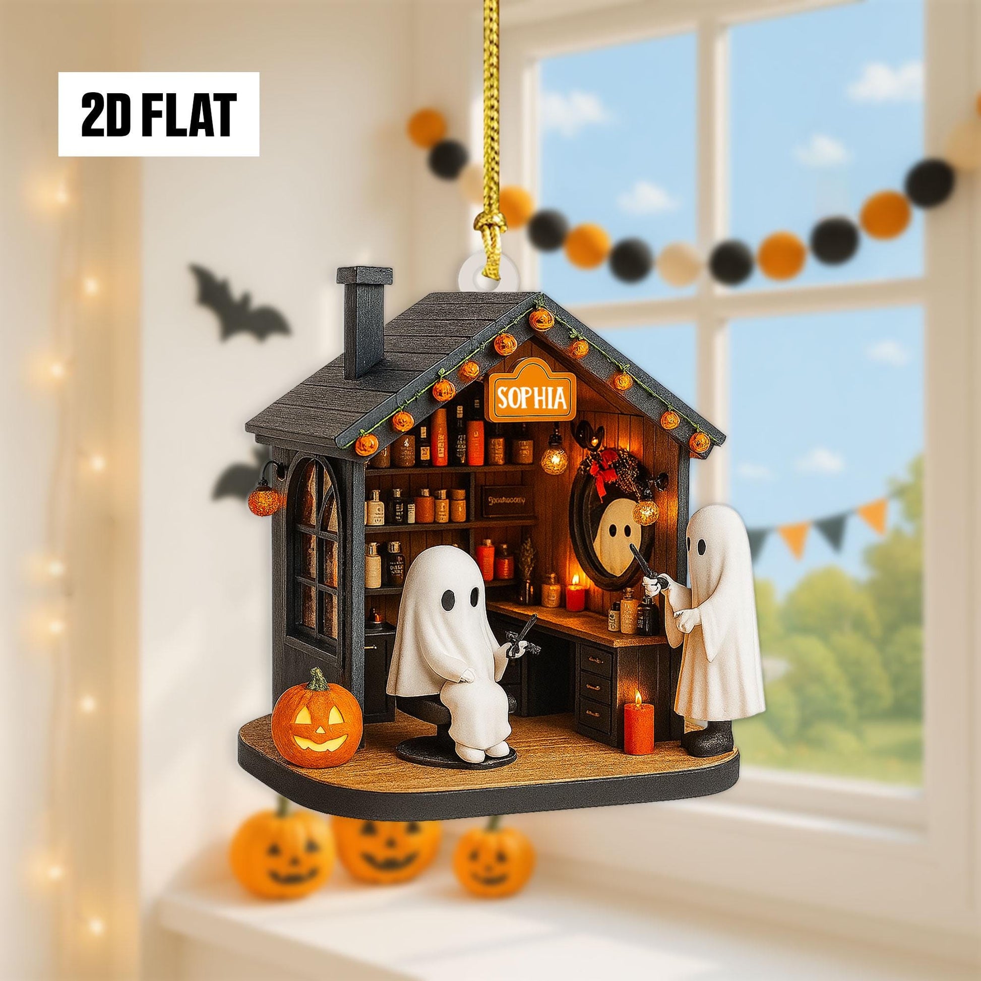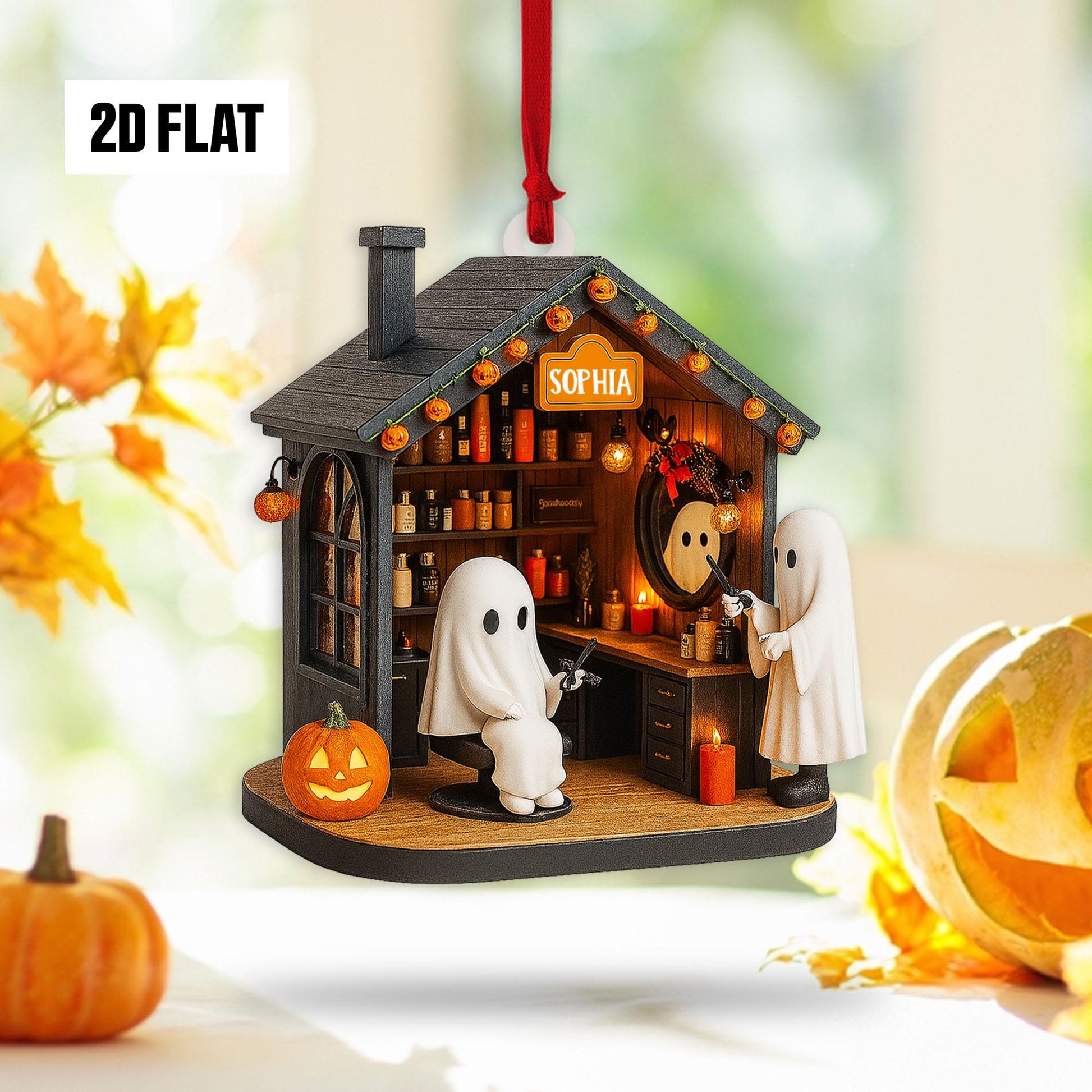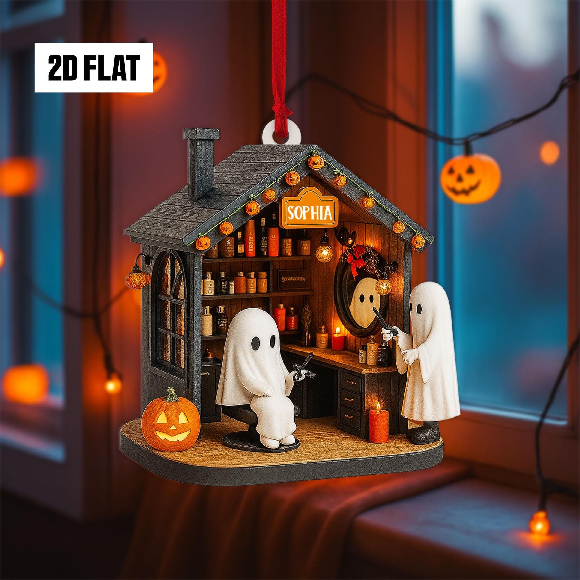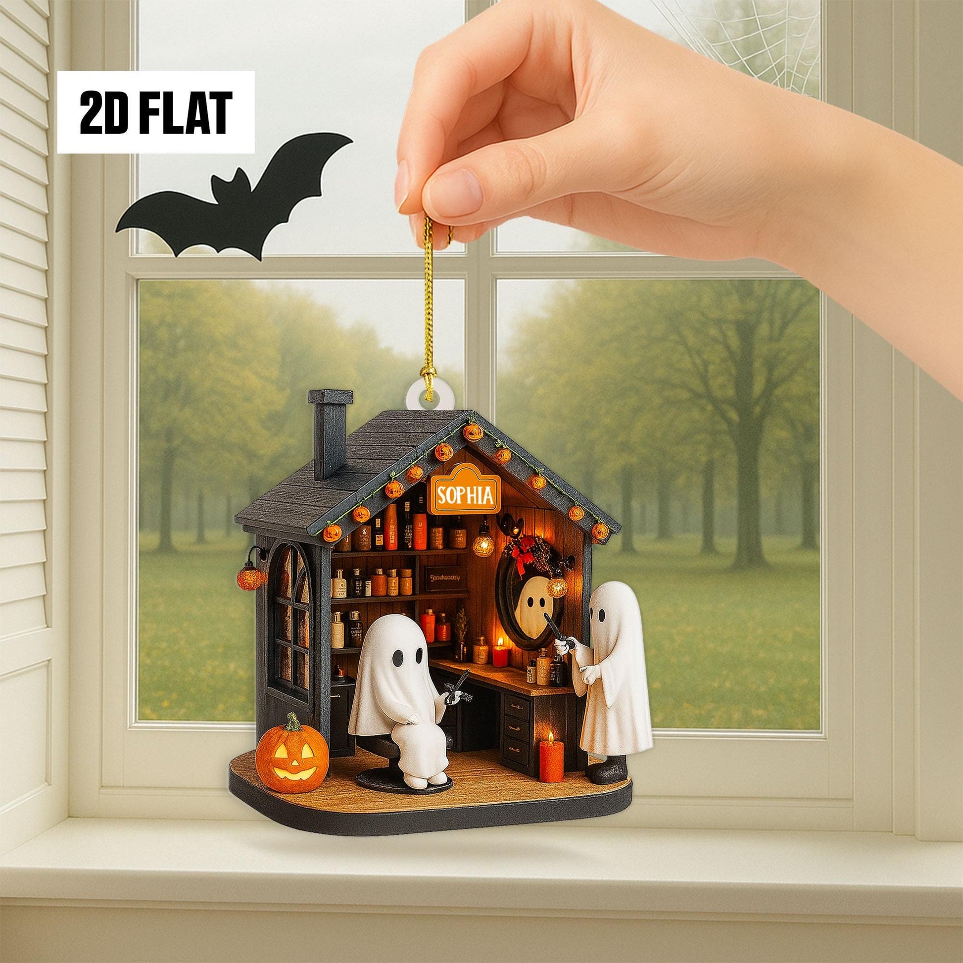 Personalized Hair Salon 2D Flat Ornament, Custom Name Ornament, Hairdresser Hairstylist Gift, Halloween Window Hangings, Hair Salon Decor
