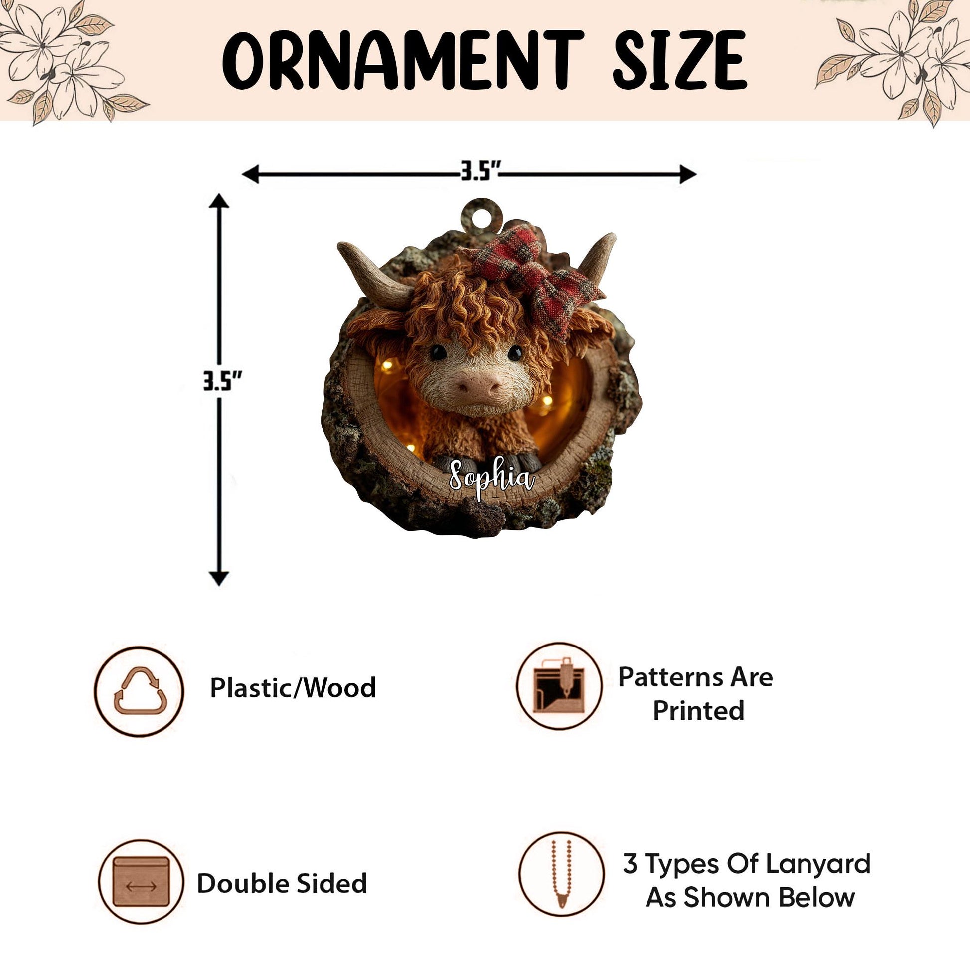 Personalized Highland Cow 2D Flat Ornament, Custom Name Christmas Tree Ornament, Farmhouse Christmas Home Decor, Gift for Highland Cow Lover