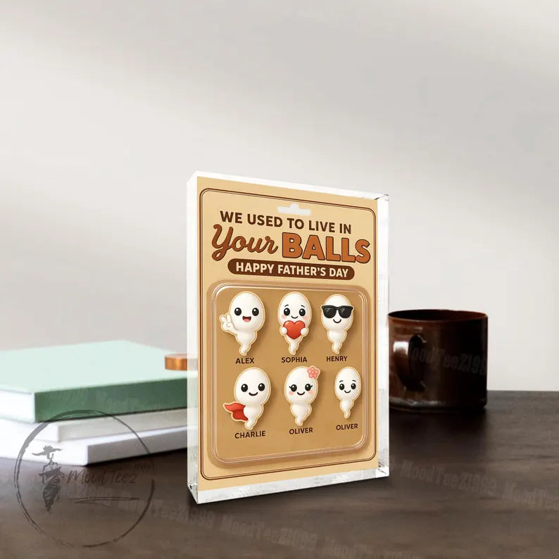 Personalized I Used To Live In Your Balls, Grandpa Gift, Funny Fathers Day Acrylic Block Plaque, Custom Father's Day Gift for Daddy