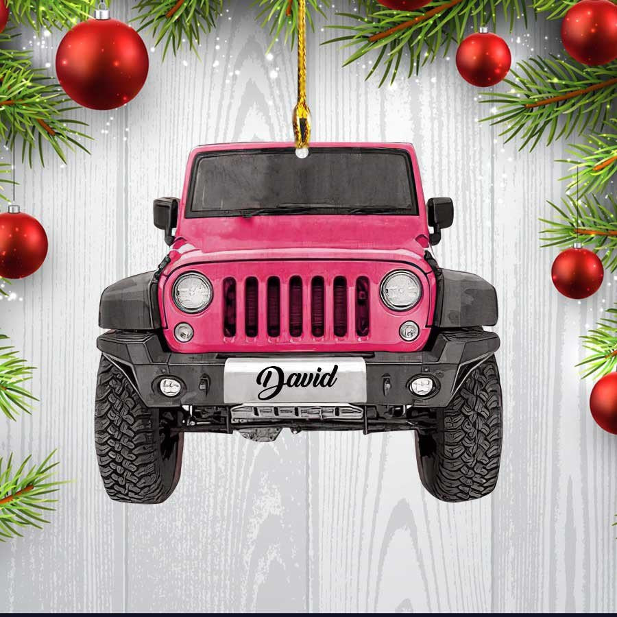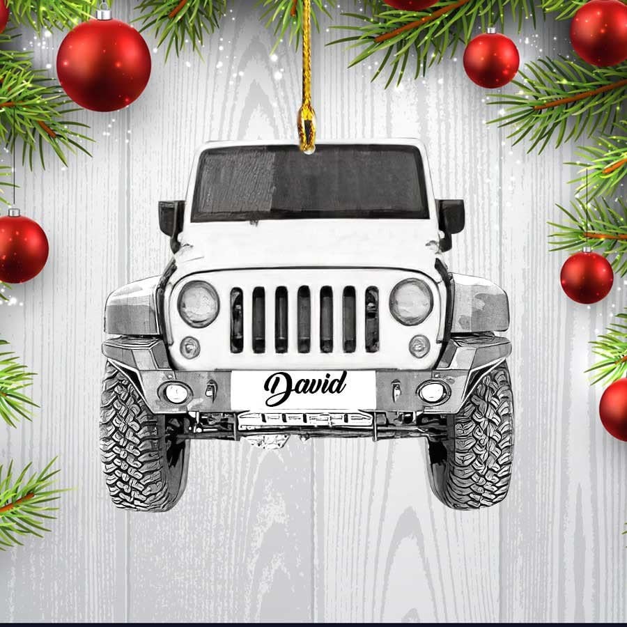 Personalized Jee Car Lovers Ornament, Custom Name Flat Acrylic Ornament, Gift For Dad,Christmas Decoration