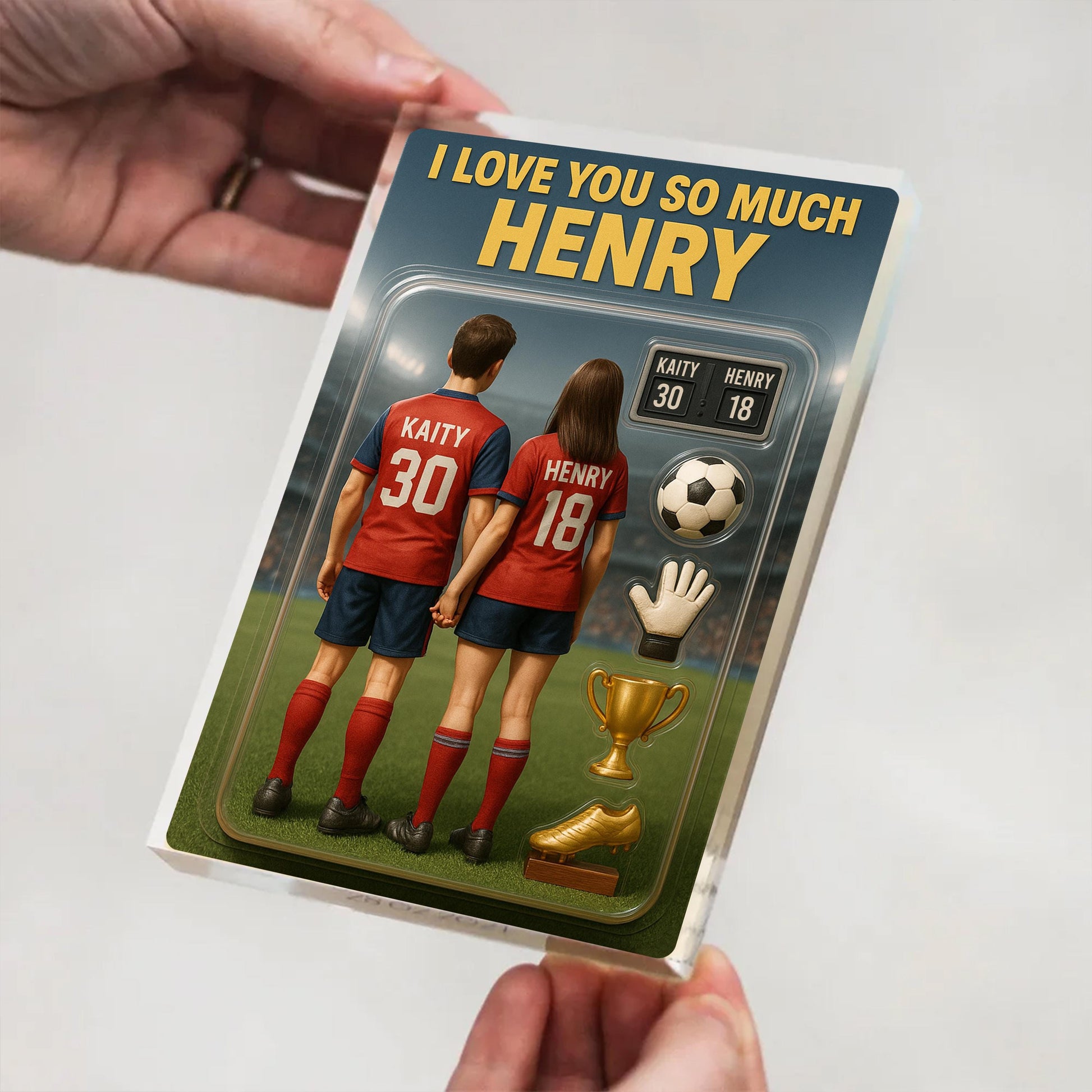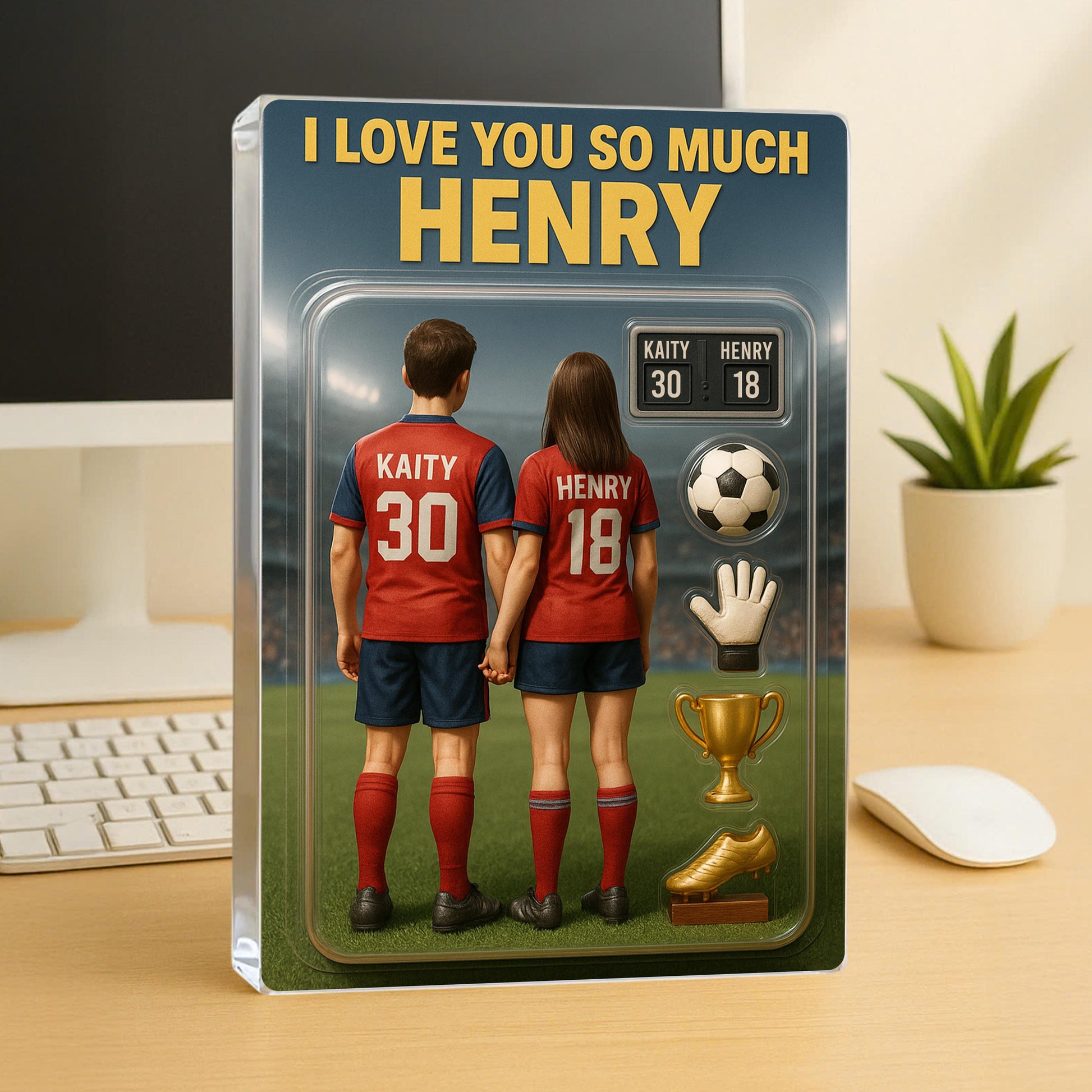 Personalized Soccer Action Figure Acrylic Block Plaque, Personalized Gift for Him, Her, Couple Gift for Soccer Lover, Anniversary Gift