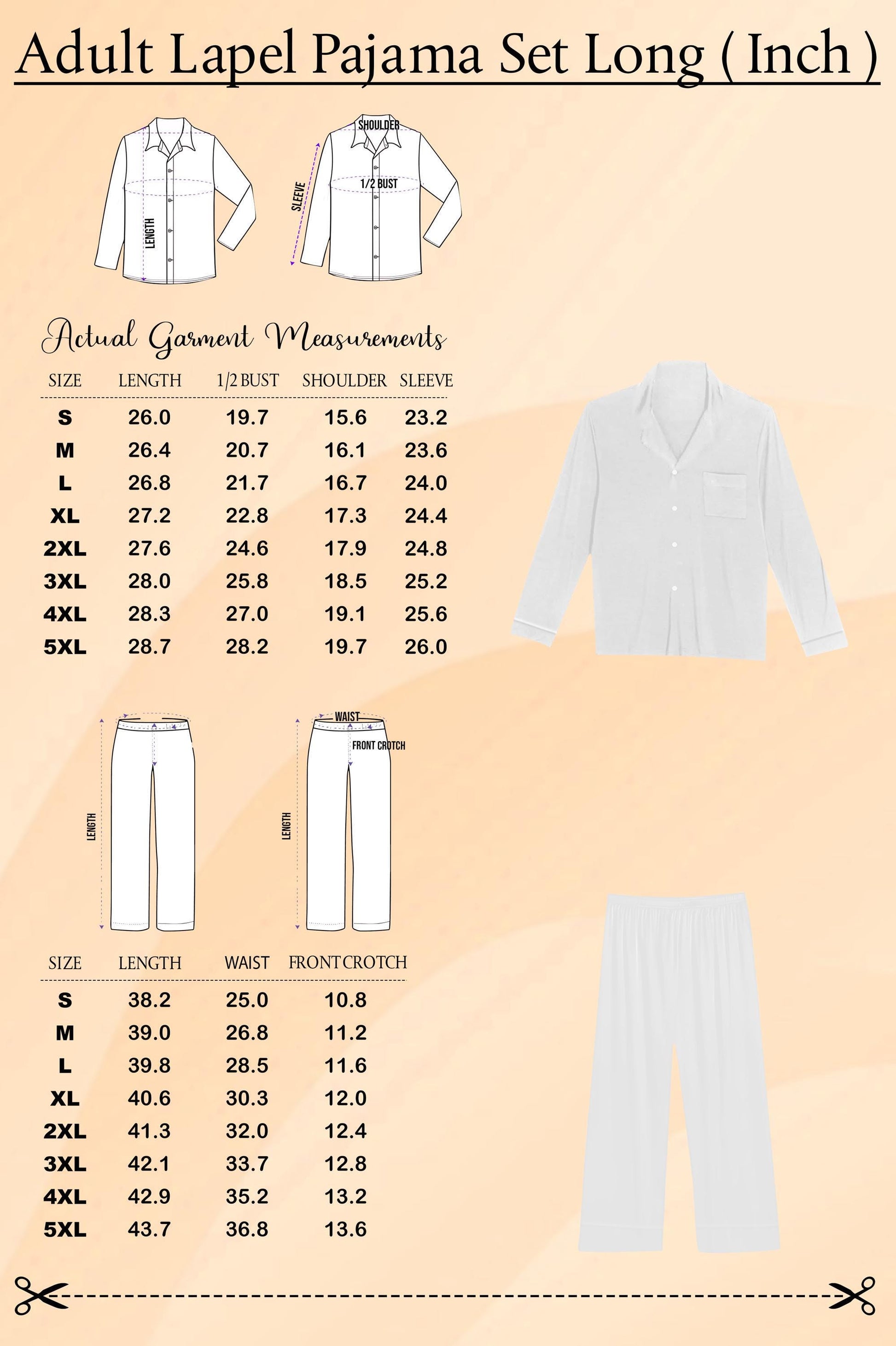 - Adult Long Set: Long-sleeve shirt + long pants.
