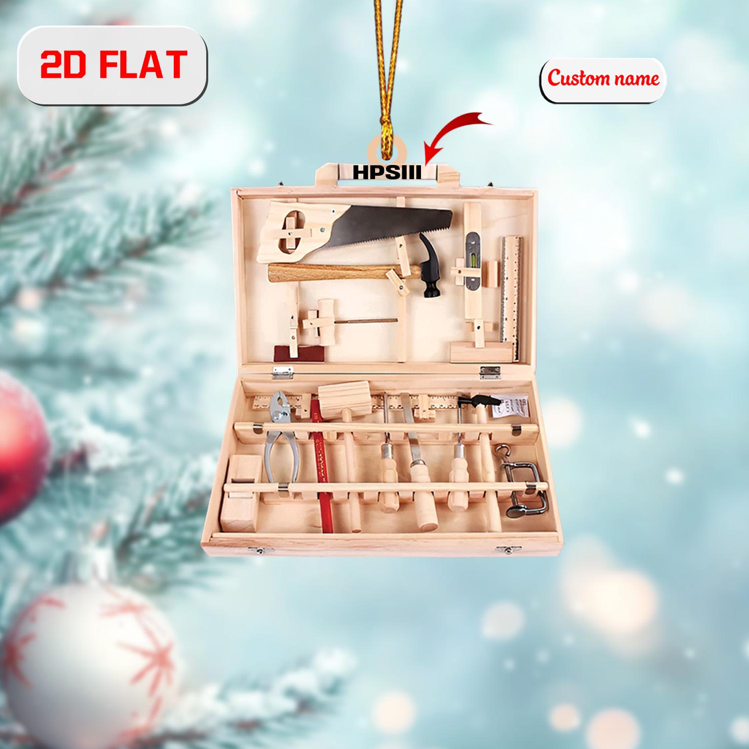 Personalized Toolbox Ornament Custom Name, Acrylic Christmas Decoration, Carpenter Gift, Woodworker Ornament for Handyman, Builder or Dad