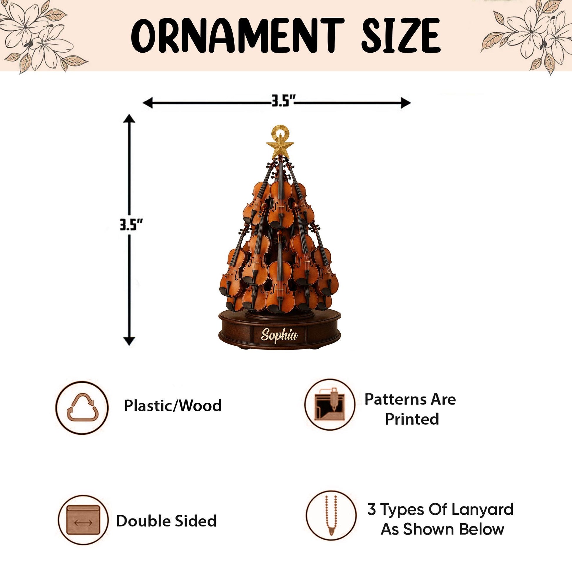 Personalized Violin 2D Flat Ornament, Custom Violin Christmas Tree Ornament, Music Christmas Home Decor, Gift for Violin Player, Violinist