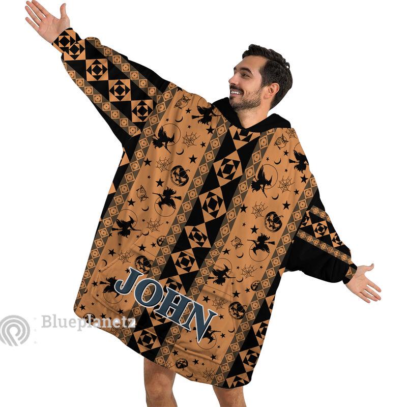 Personalized Wearable Hoodies Blanket, Custom Name Halloween Pattern Hoodie Blanket, Custom Witch Oversized Blanket, Gift