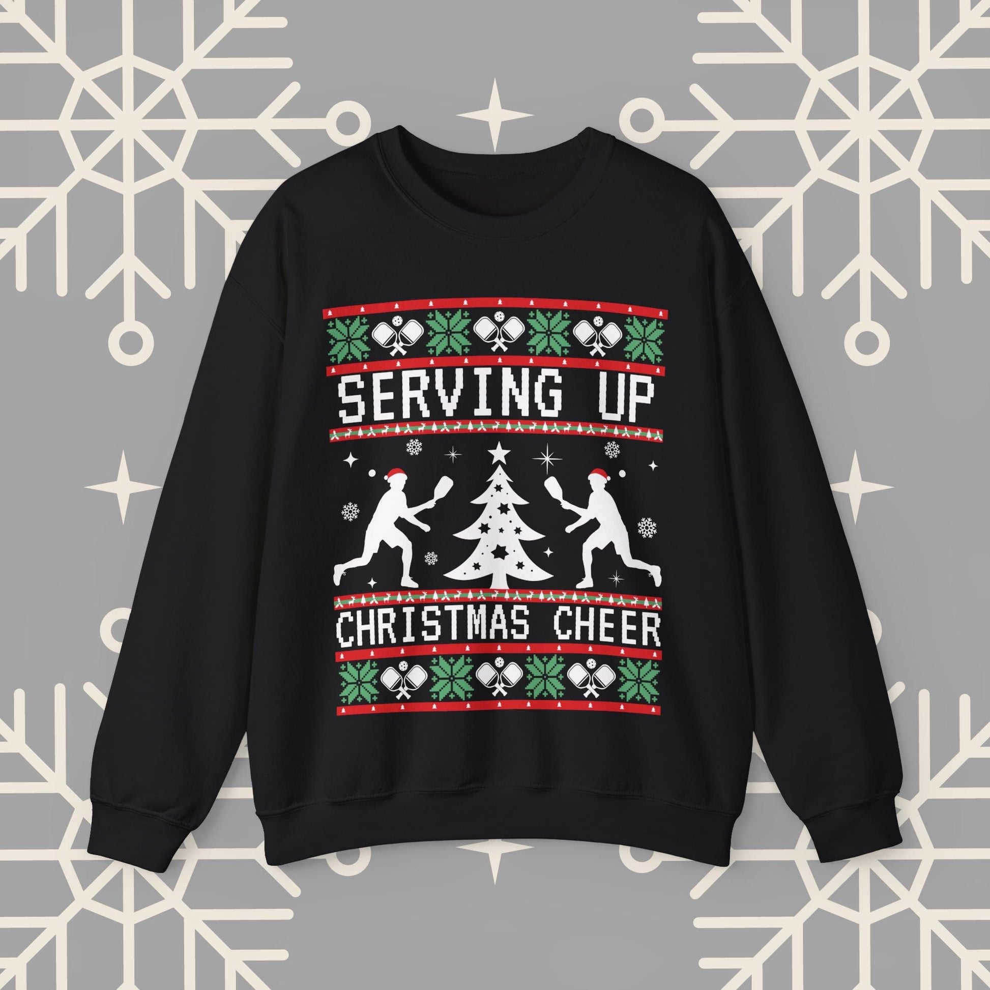 Pickleball Ugly Christmas , Serving Up Christmas Cheer Sweatshirt, Pickleball Holiday Party Crewneck, Pickleballer Gifts
