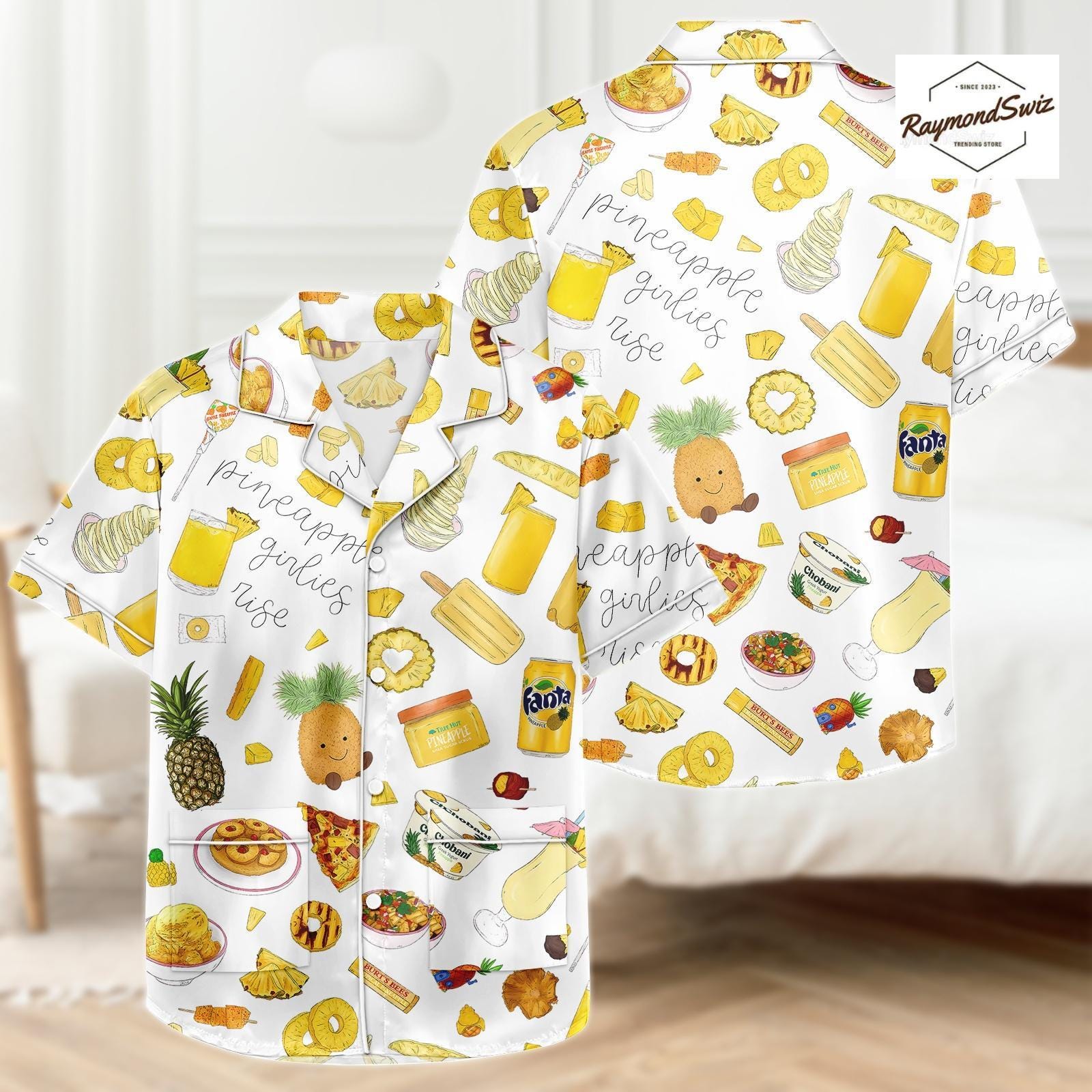 Pineapple Print Pajama Set, Yellow Button Up Pajama, Cute Shorts Pyjama, Matching PJs Set