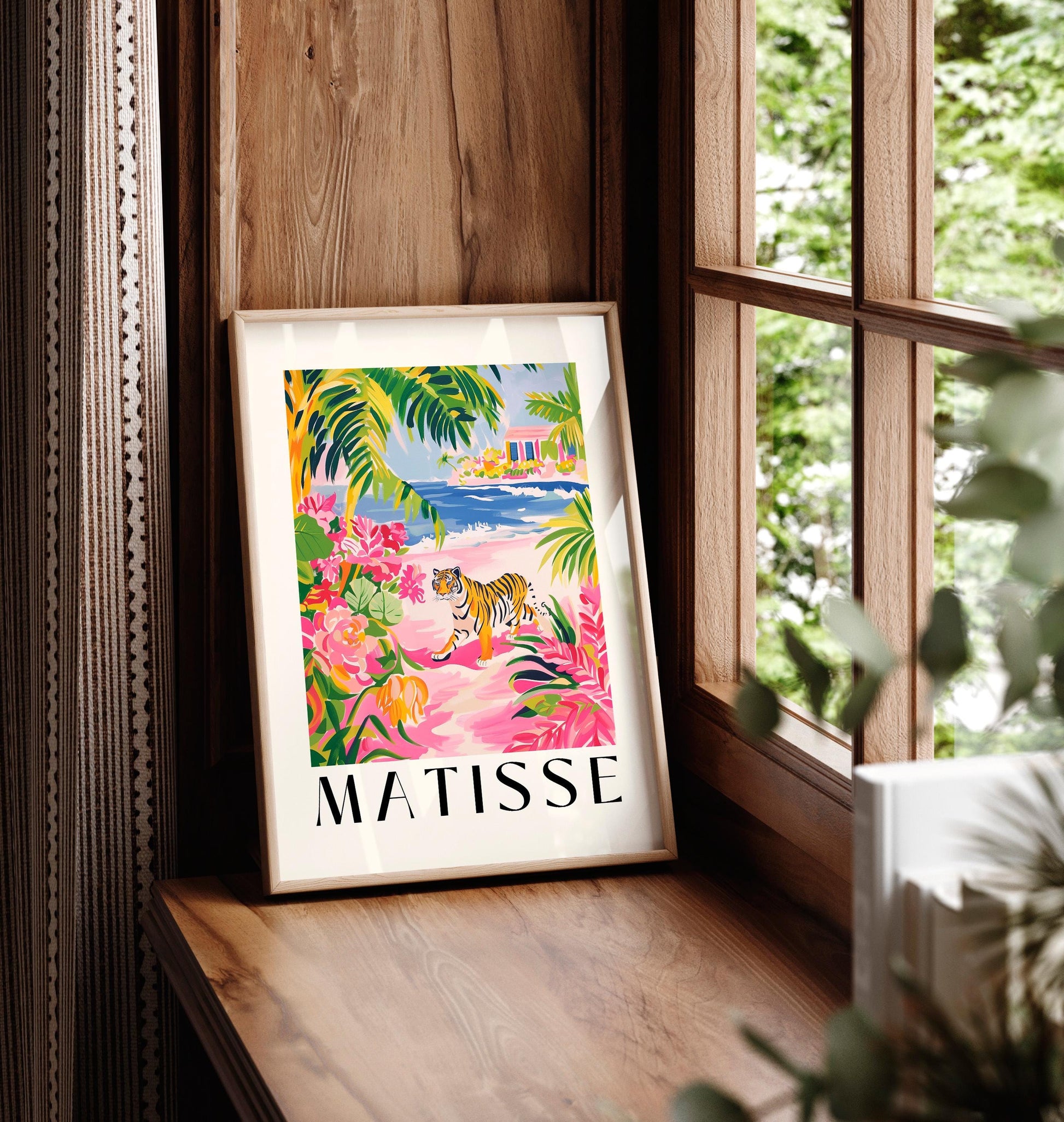 Pink Tiger Art Print: Beachy Matisse Style Wall Art