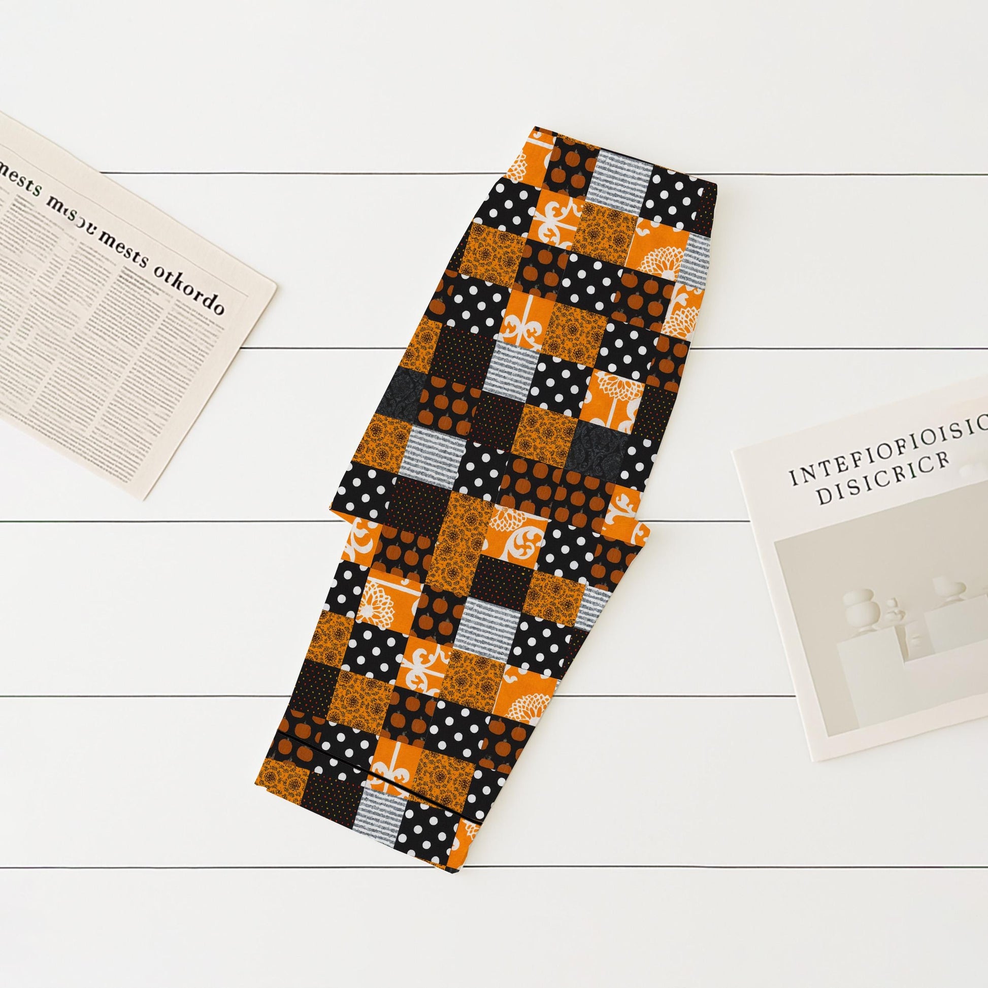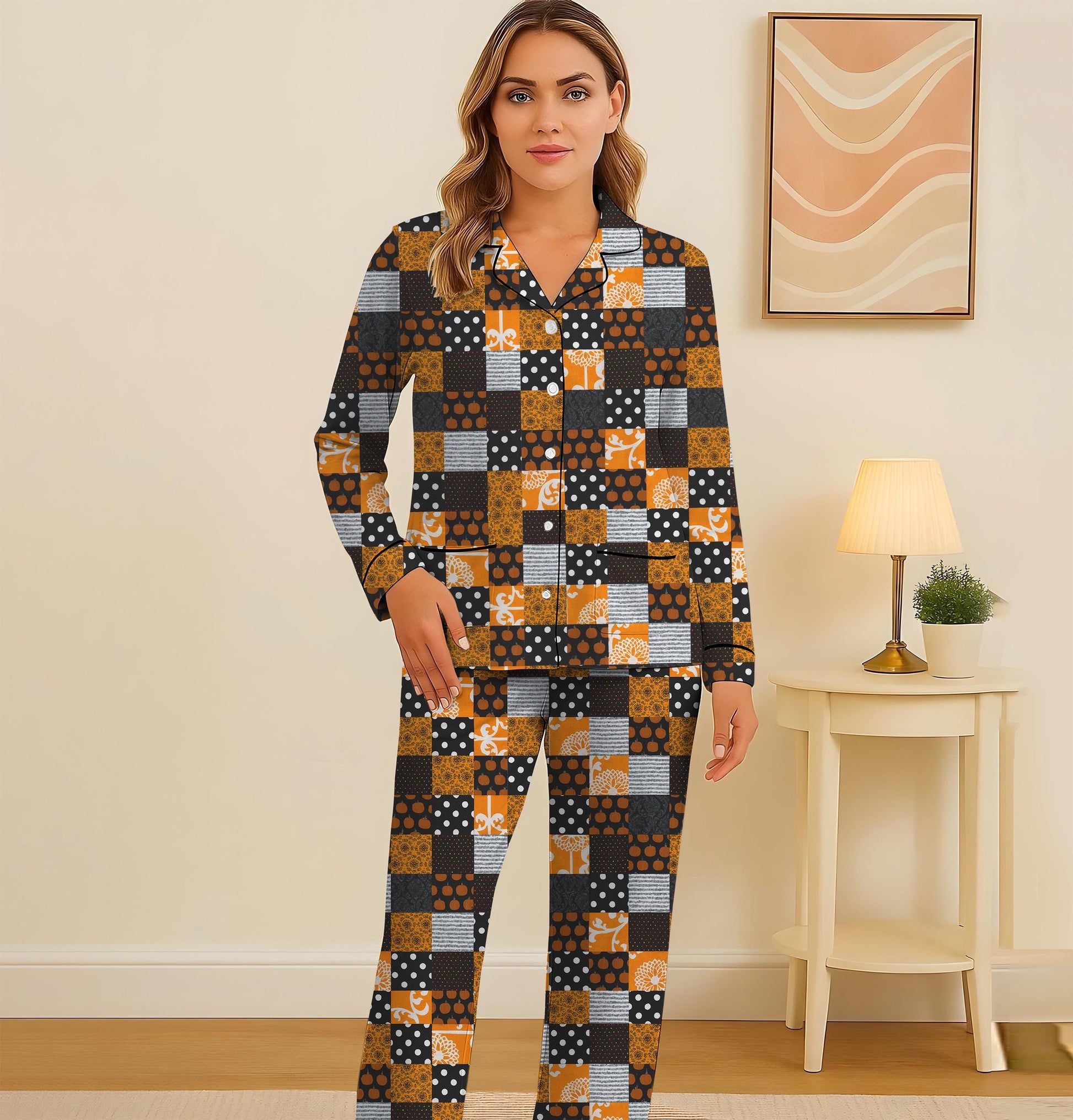 Plaid Patchwork Halloween Pajamas Set, Black Orange Cozy Sleepwear, Cute Spooky Night Lounge Set, Spooky Season Gift