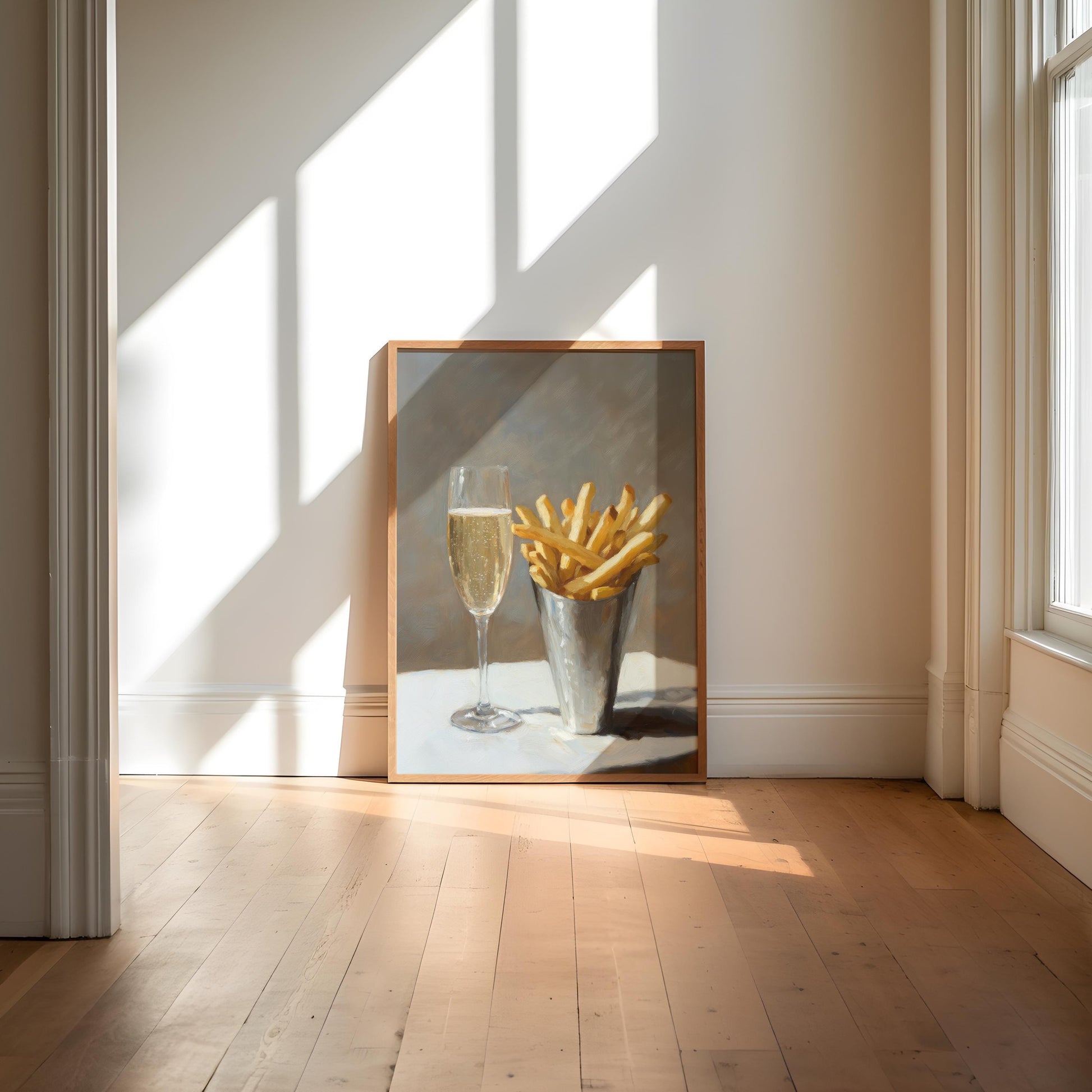Pomme Frites and Champagne Bar Cart Art Print | Cute Quirky Whimsical | Cocktail Art Bar Cart Decor | French Fries | Trendy Home Wall Art