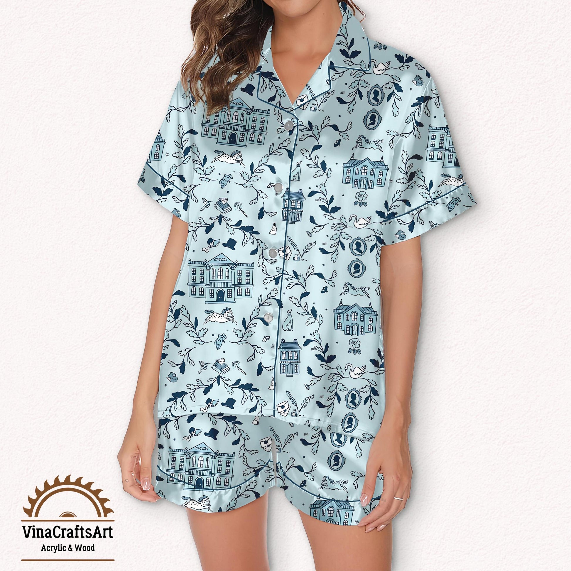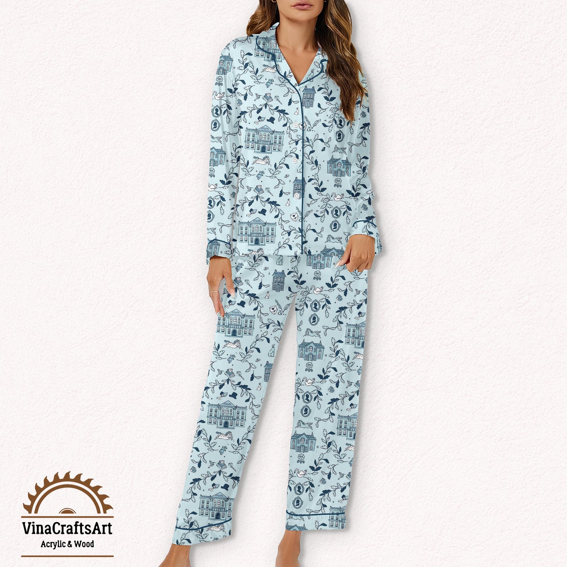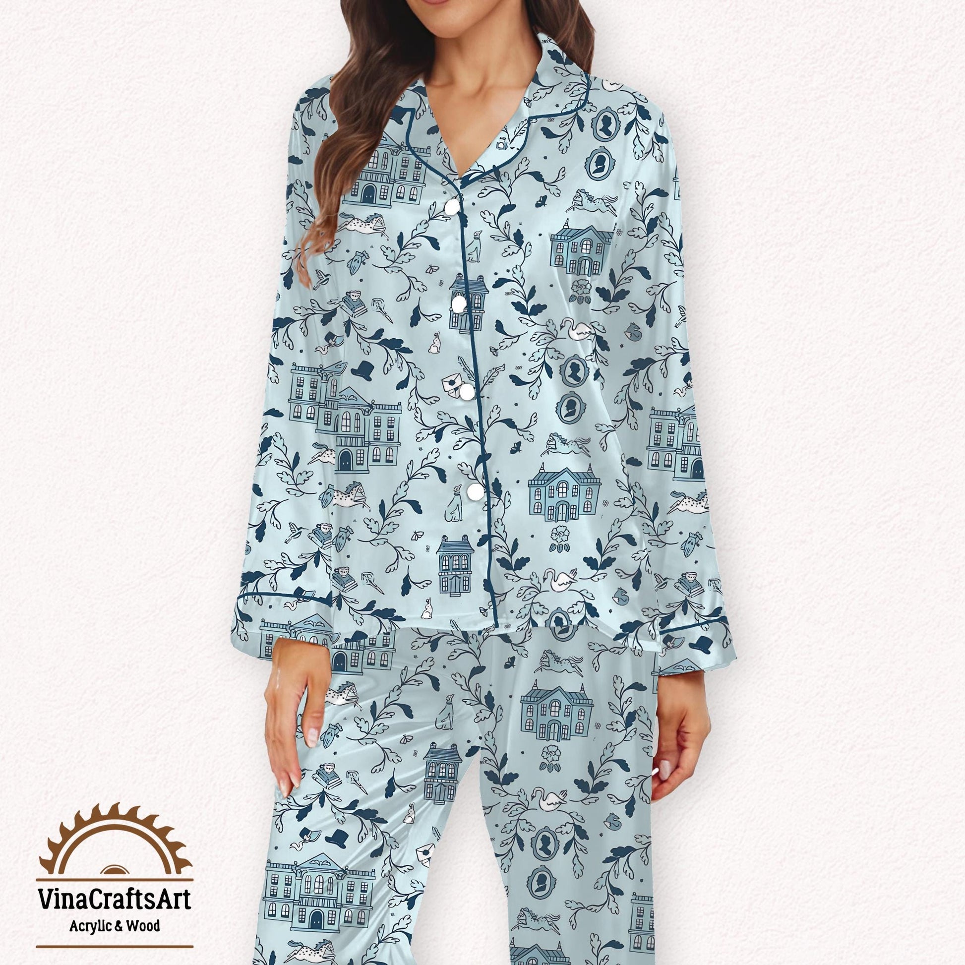 Pride and Prejudice Light Blue Journal Pajamas Set, Jane Austen Toile Print Sleepwear, Toile Print Sleep Set, Literary Loungewear Gift