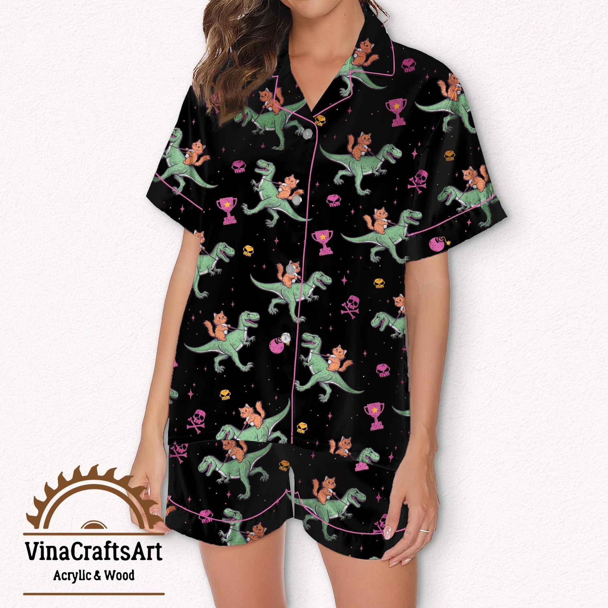 Princess Donut & Mongo Pajamas Set, Dungeon Crawler Carl Long Sleeve Pajamas, Funny Cat Dinosaur Sleepwear, Cozy Gamer Gift