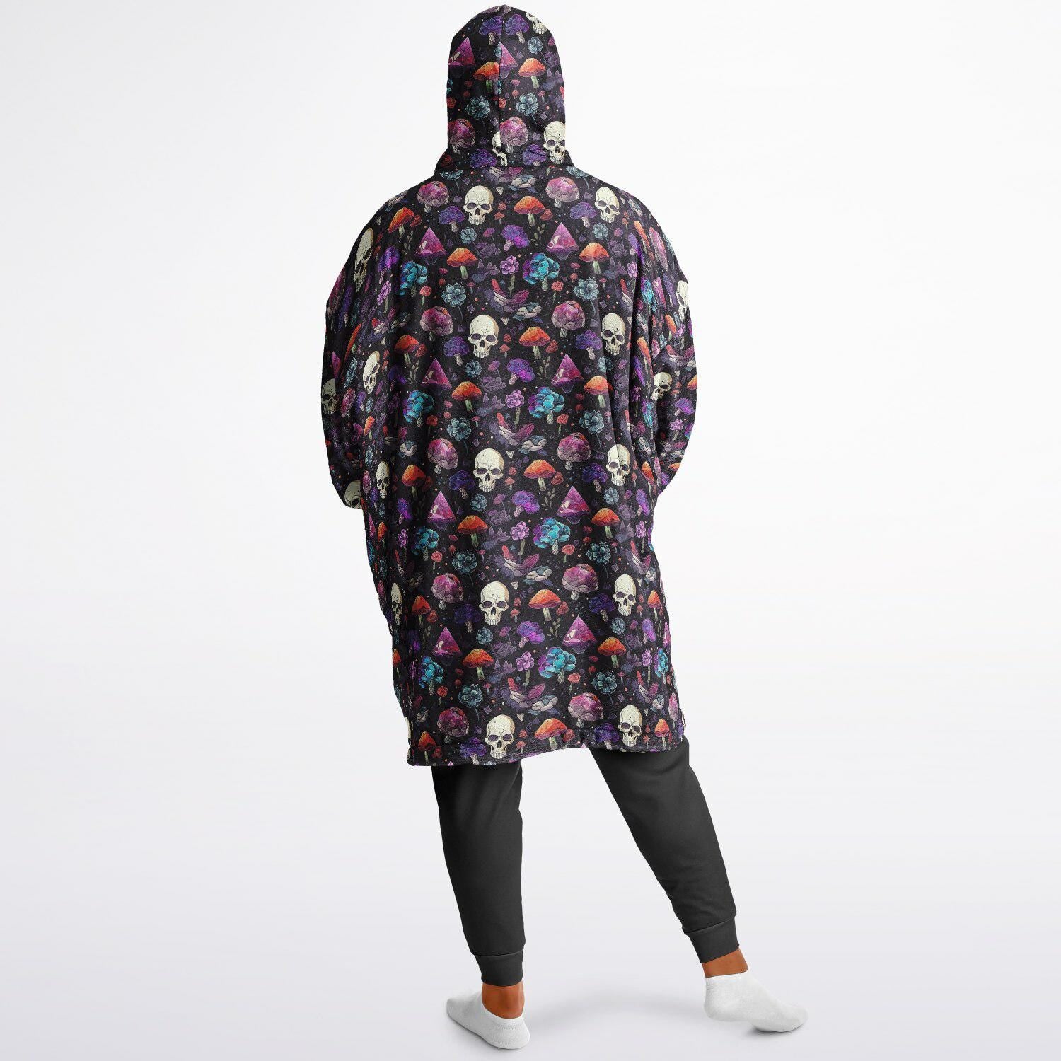 Psychedelic Trippy Horror Halloween Reversible Snug Hoodie,All Over Print Skulls Pullover Hooded Blanket Sleeves,Lounge Wear,Christmas Gift