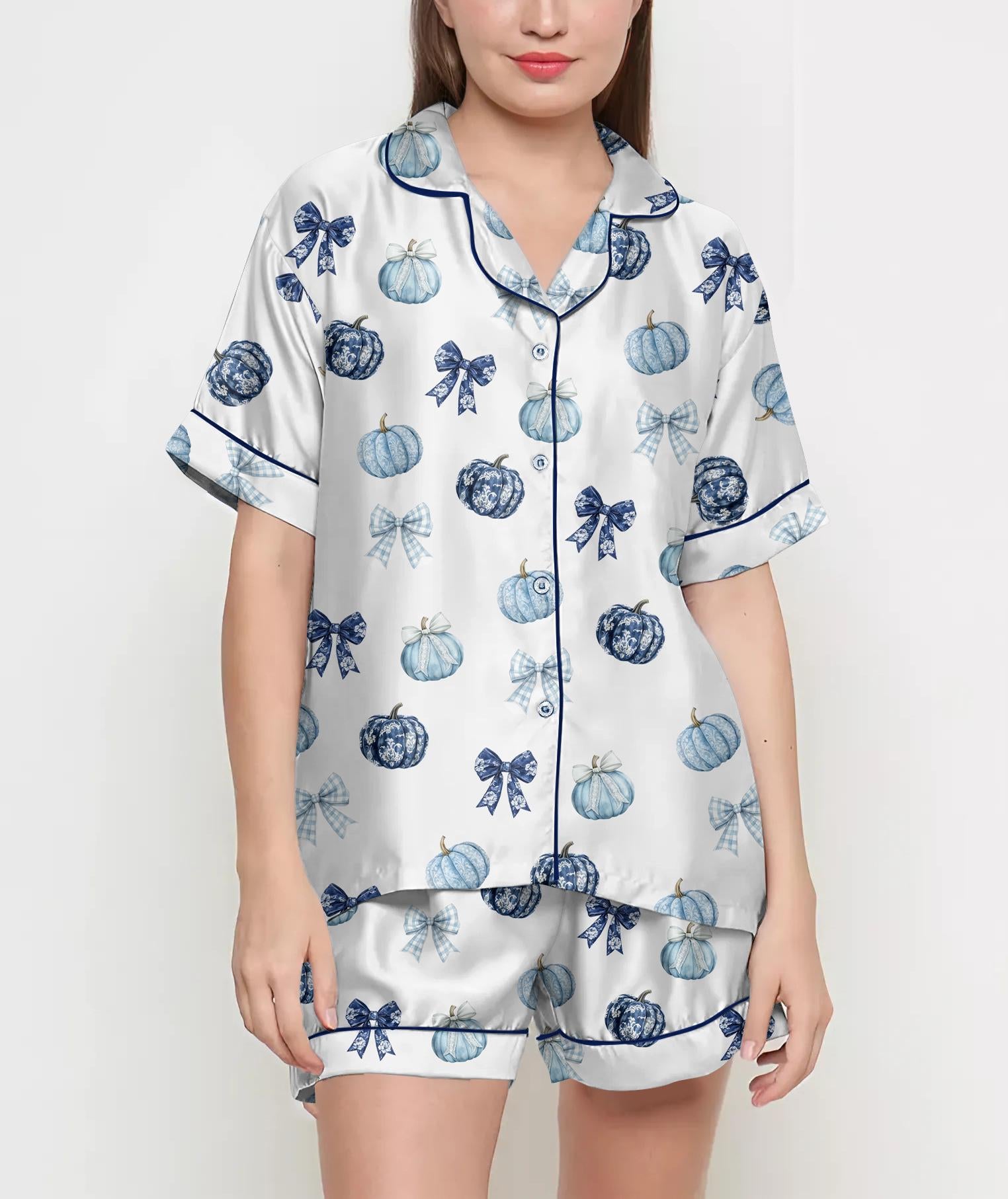 Pumpkin Halloween Gifts, Halloween Shirt, Pajama Satin Set, Halloween Coquette, Spooky Season, Fall Gift, Gift For Halloween, Vintage Autumn