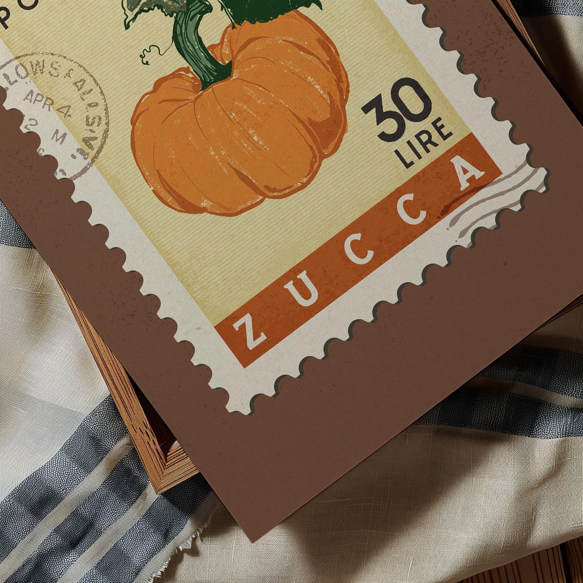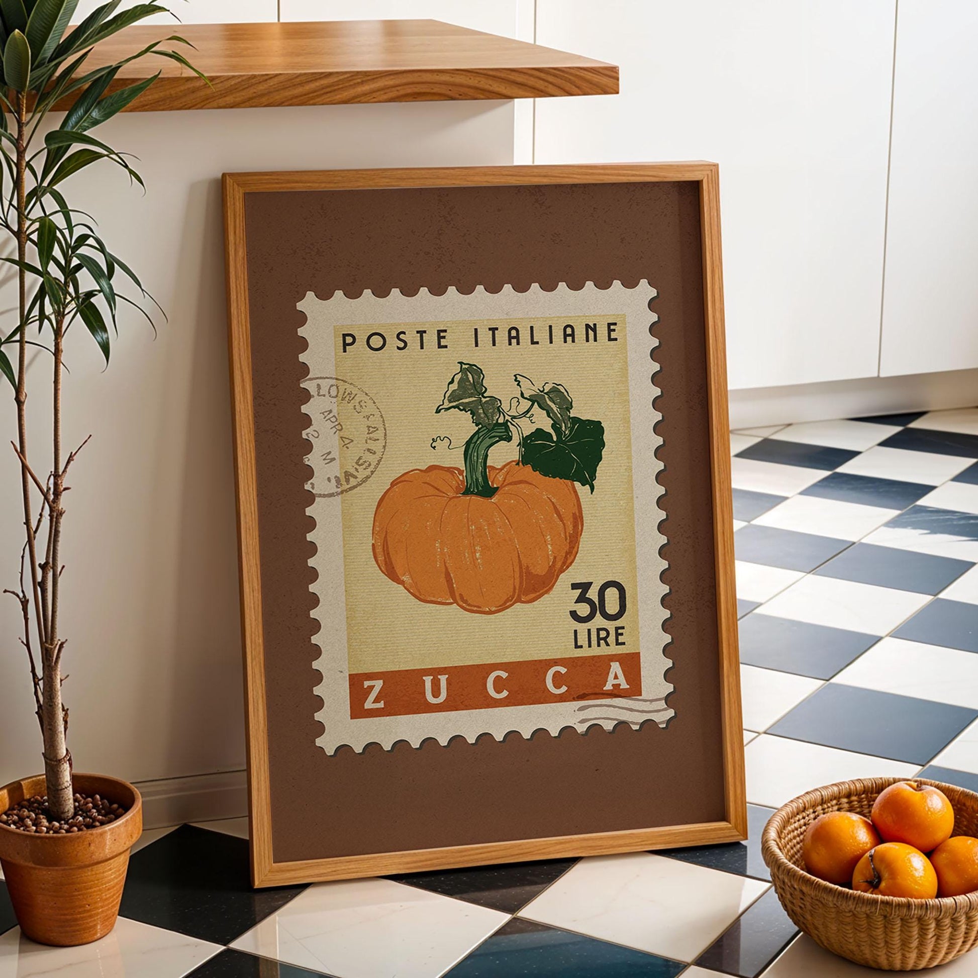 Pumpkin Poster, Retro Stamp Poster | Retro Kitchen Print | Italian Food Art Print, Trendy Kitchen Decor, Unique Food Gift