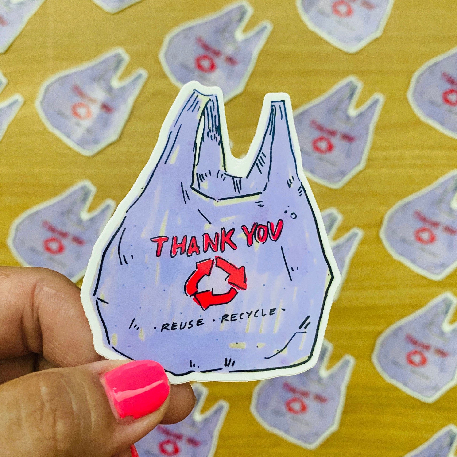 Purple Recycle Grocery Bag Icon | 3" Sticker Decal | Grocery Shopper Tote