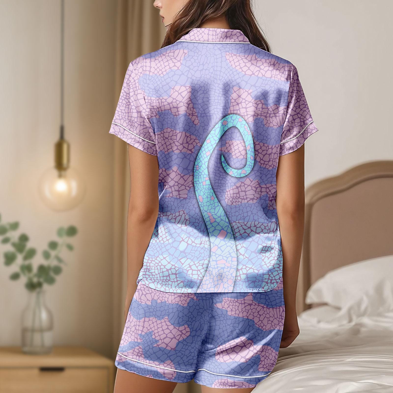 Randall Costume Satin Pjs Shorts, Monsters Inc Pajama Set, Satin Halloween PJs With Shorts, Purple Villain Loungewear, Scaly Monster Sl
