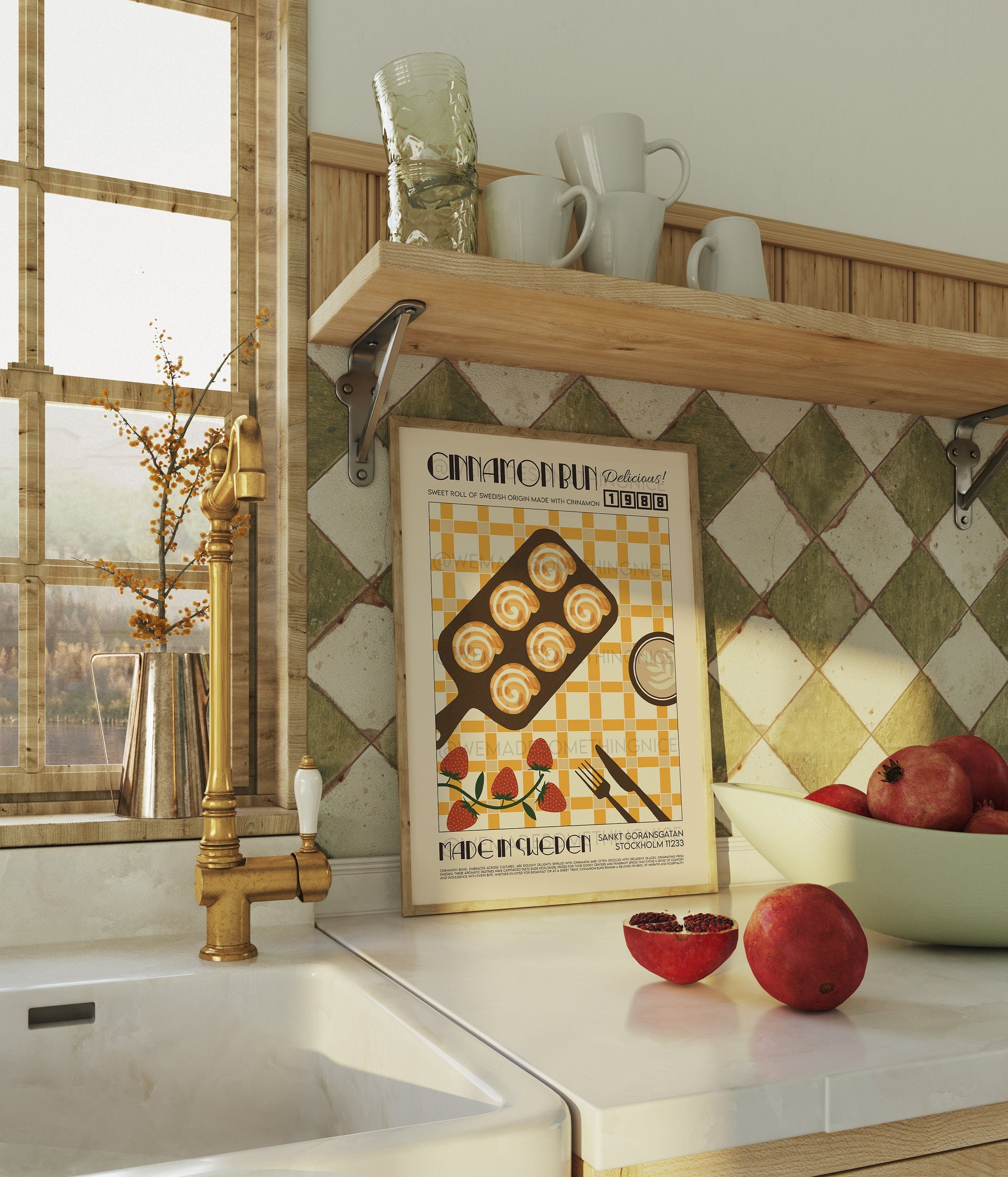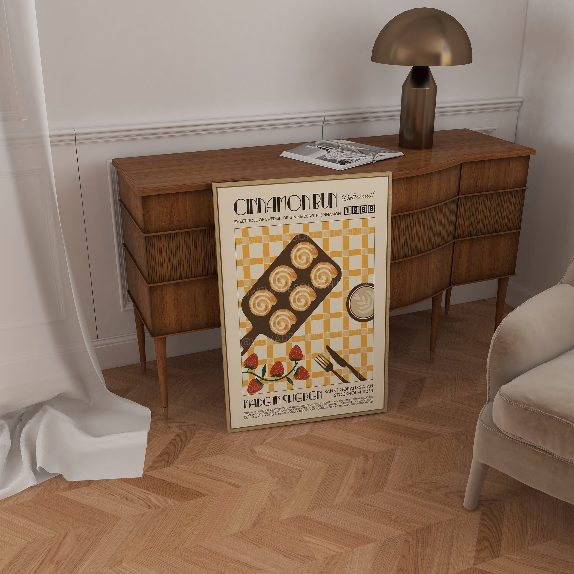 Retro Cinnamon Bun Poster, Kitchen Poster, Kitchen Print, Food Print, Modern Kitchen Decor, Retro Poster, Pop Art, Kitchen Art, Croissant
