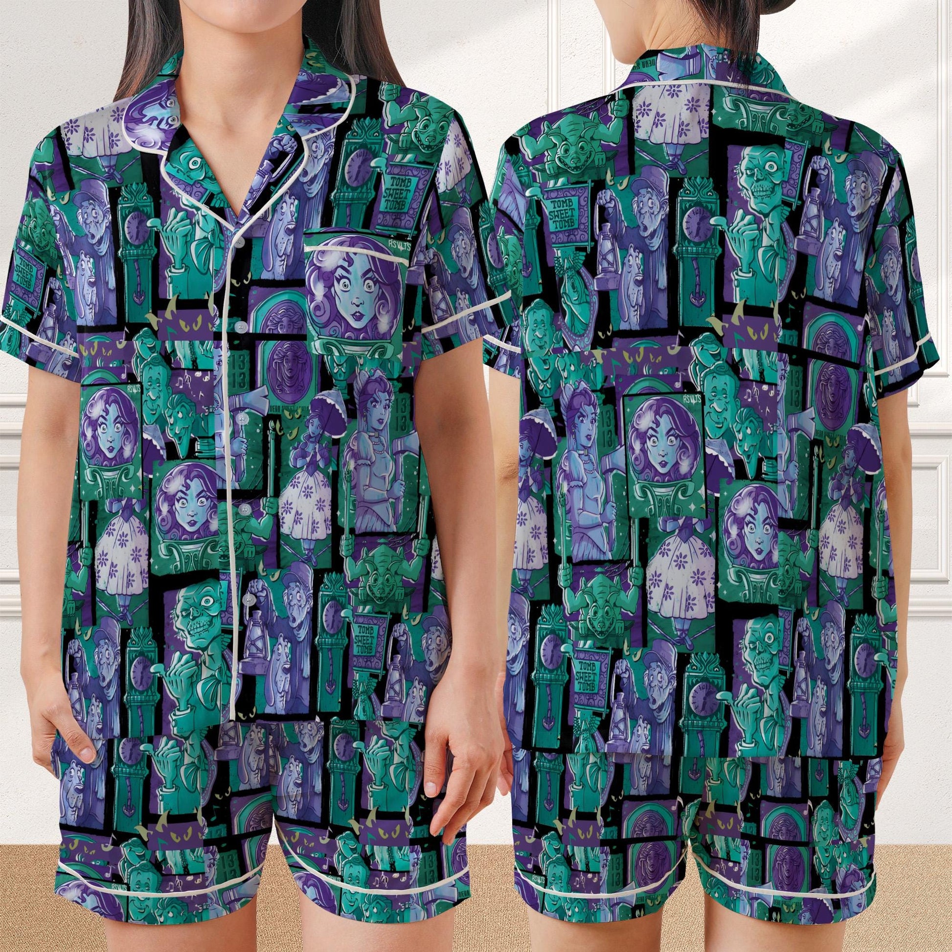 Retro The Haunted Mansion Pajama Set, Madam Leota Hitchhiking Ghosts The Hatbox Ghost Sleepwear, Welcome Foolish Mortals Loungewear Set