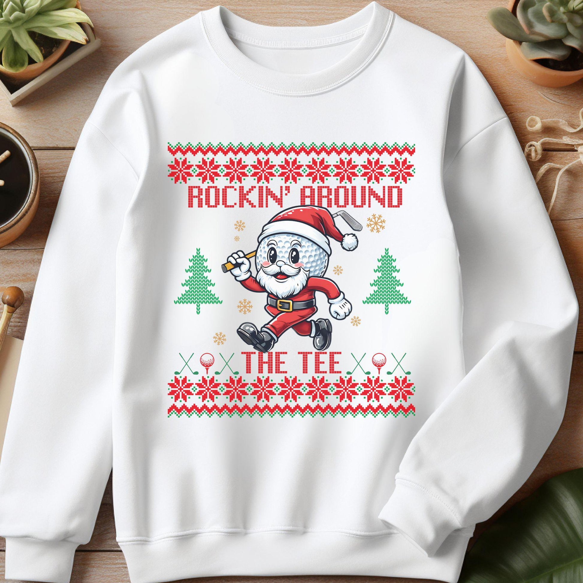 Rockin' Around the Christmas Tree Shirt Santa Claus Golfing Golf Ugly Funny Secret Santa Gift Ideas Ugly Party Golfer Dad