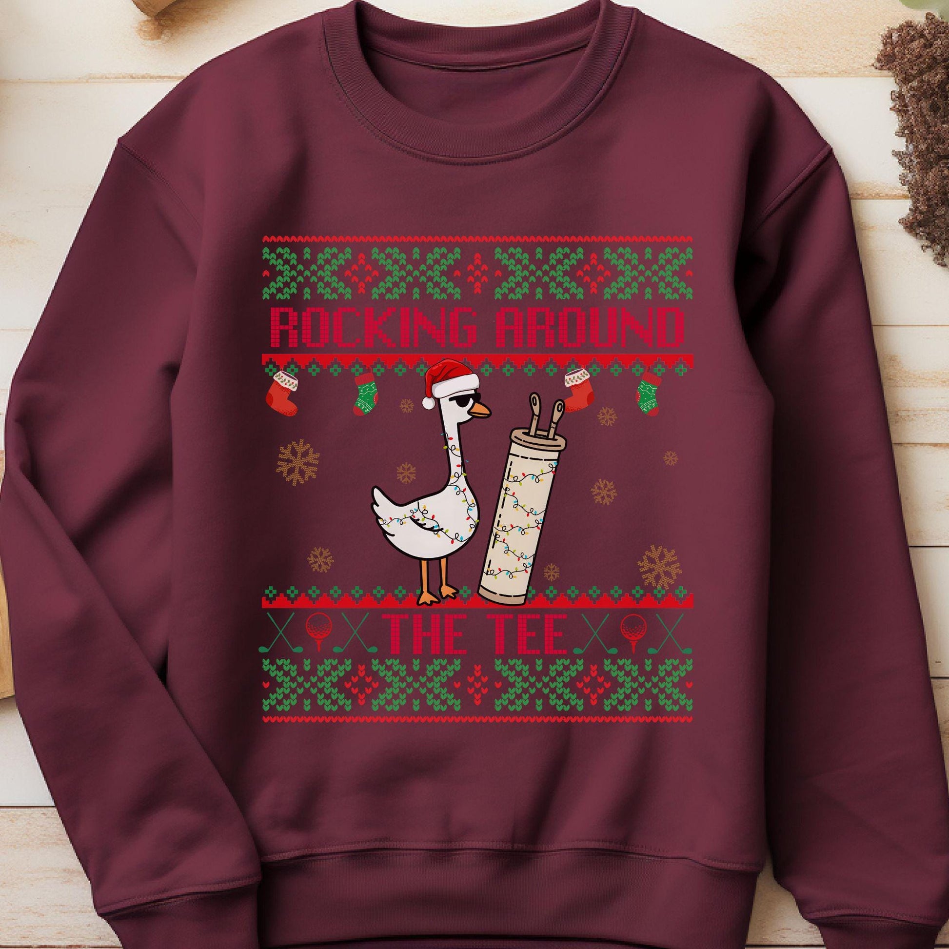 Rockin' Around the Christmas Tree Shirt Silly Goose Sweatshirt Golf Ugly Secret Santa Gift Ideas Ugly Party