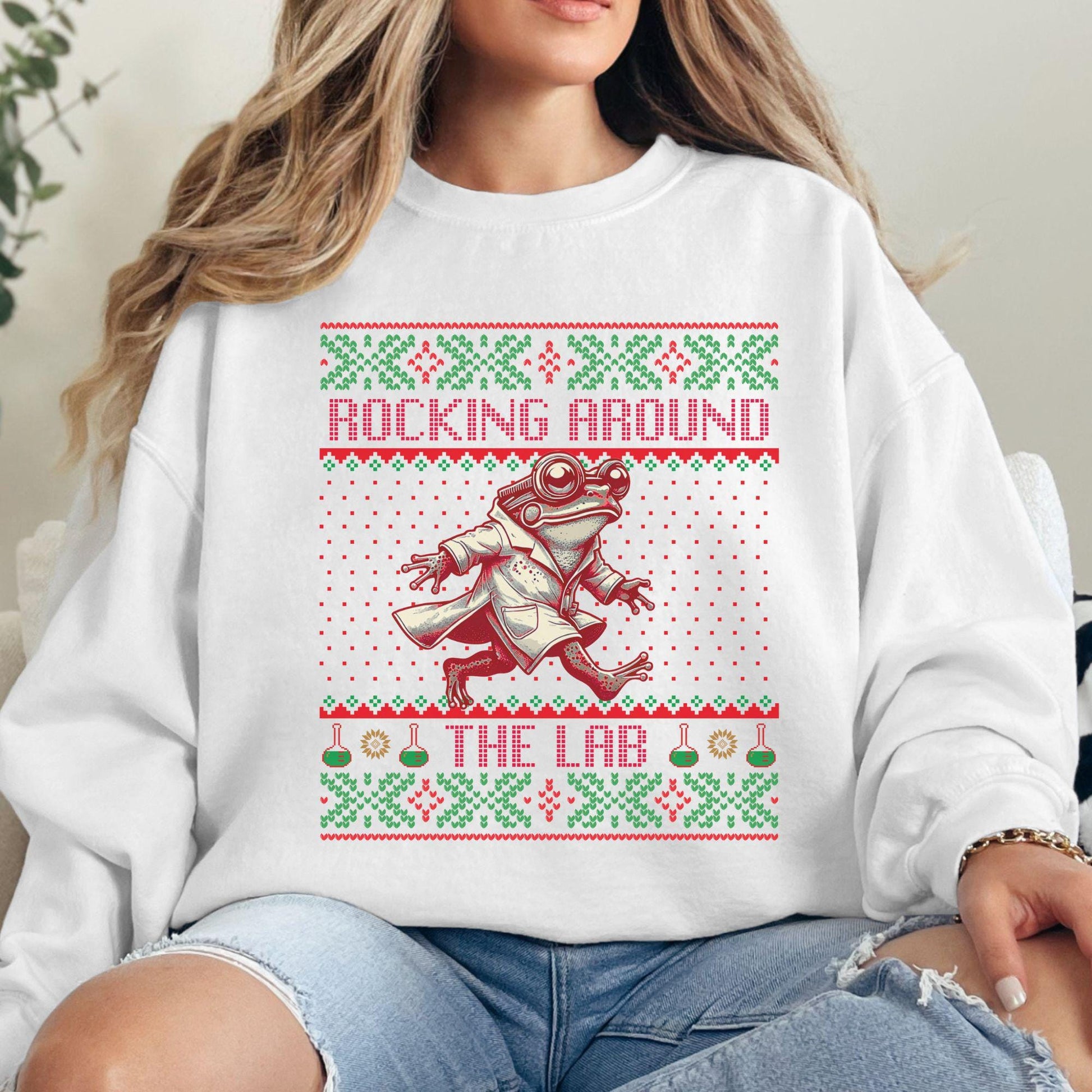 Rockin' Around the Christmas Tree Shirt Ugly Christmas Big Frog Shirt Science Nerd Shirt Funny Christmas Ugly Xmas