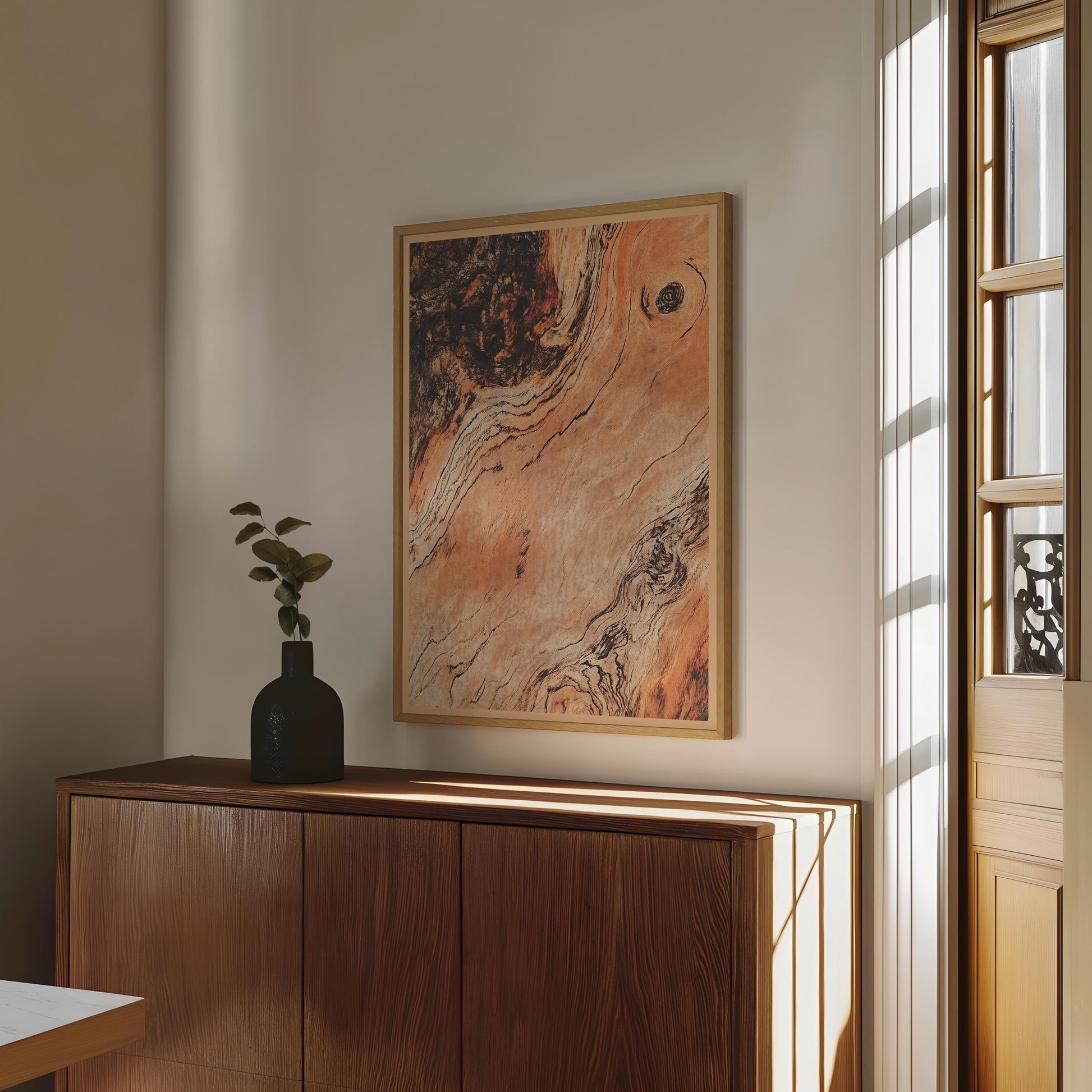 Rose Wood Wall Decor Rustic Boho Style Print Luxury Antique Wooden Style Living Room Wall Art Mid Century Modern Minimalist Simplistic Art