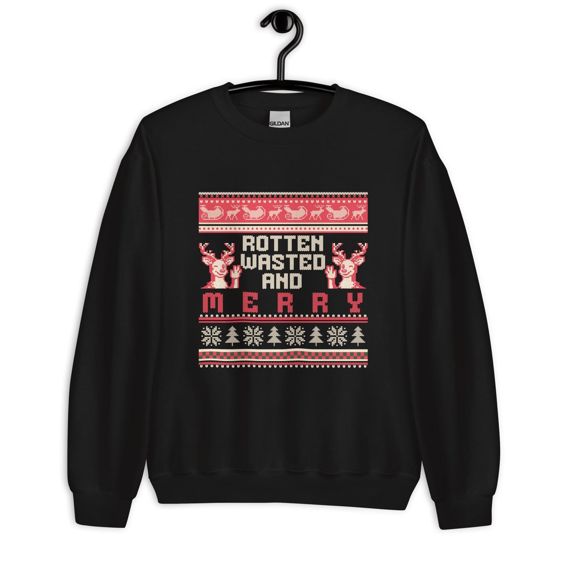 Rotten Wasted and Merry Christmas Jumper | Funny Drinking Xmas | Ugly Holiday Knitwear | Alternative Humour Xmas Outfit Gift