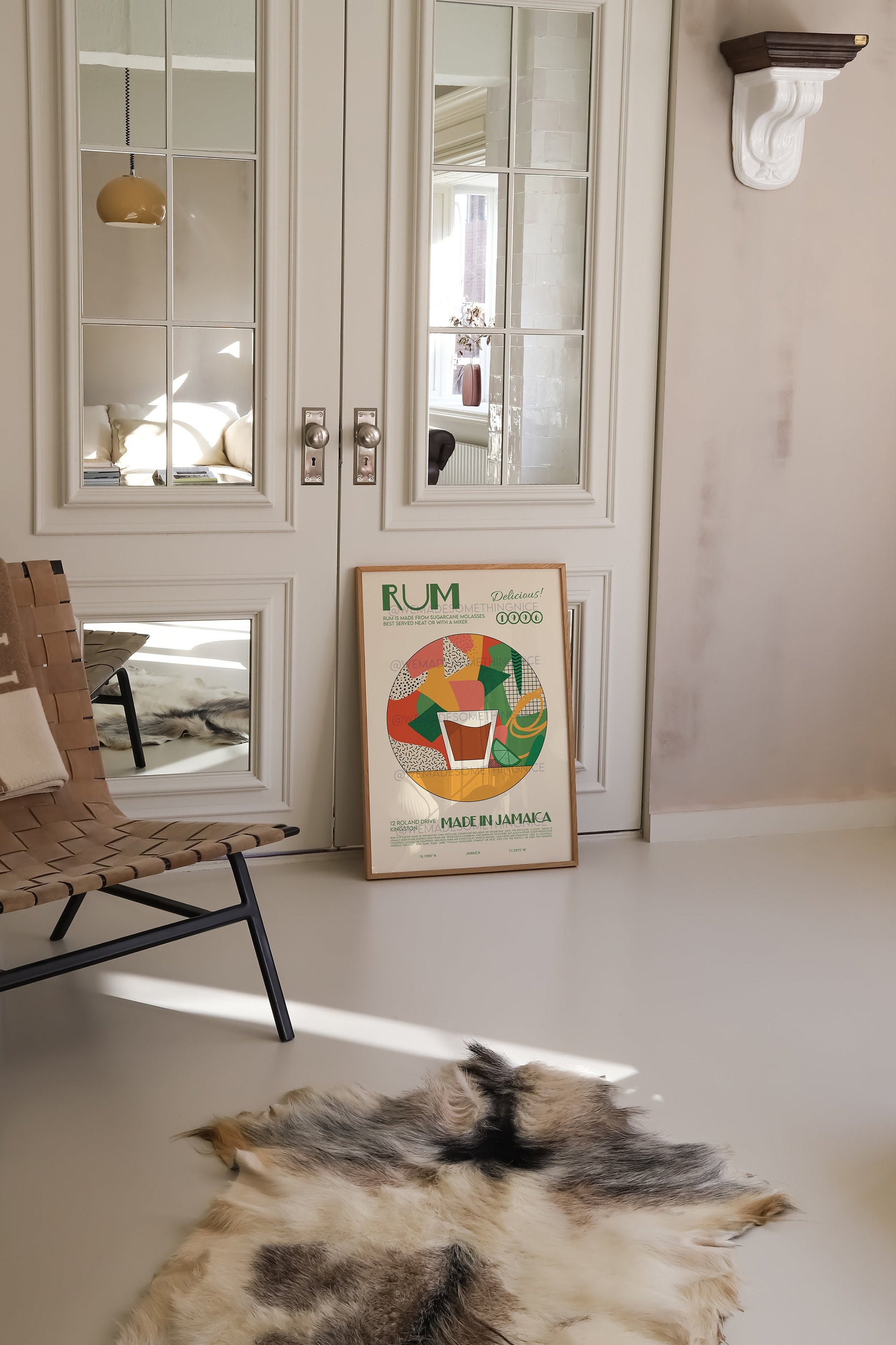 Rum Print, Cocktail Poster, French Retro, Kitchen Decor, Cocktail Poster, Mid Century Modern, Illustration, Bar Cart Print