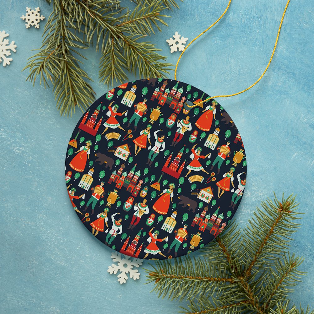 Russian Folklore Pattern Ornament, Bohemian Dolls Street Dancers and Mosques