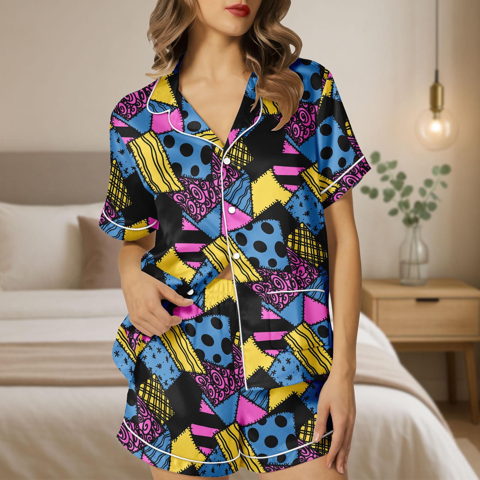 Sally Satin Pajamas Set, Nightmare Before Christmas Inspired Sleepwear, Halloween Cartoon Pjs, Satin Pajamas Set Gift