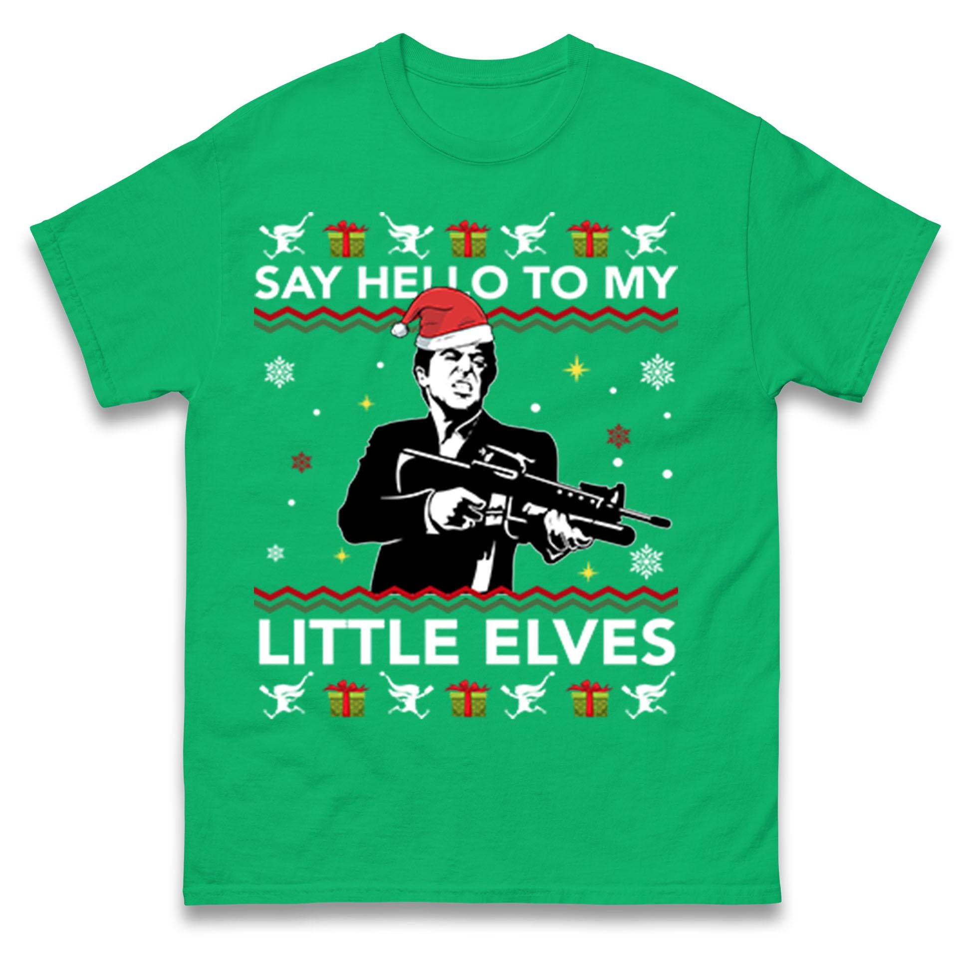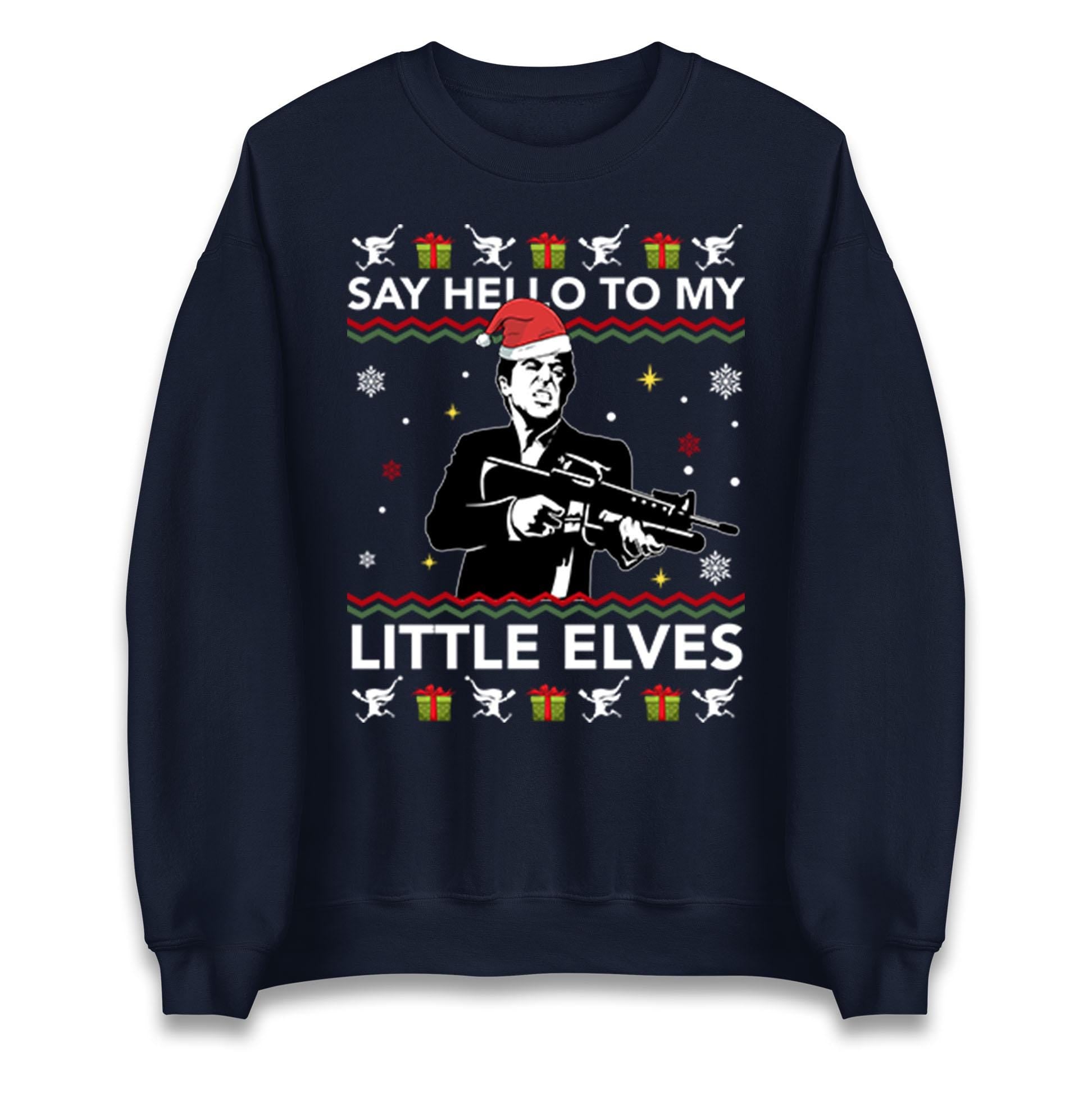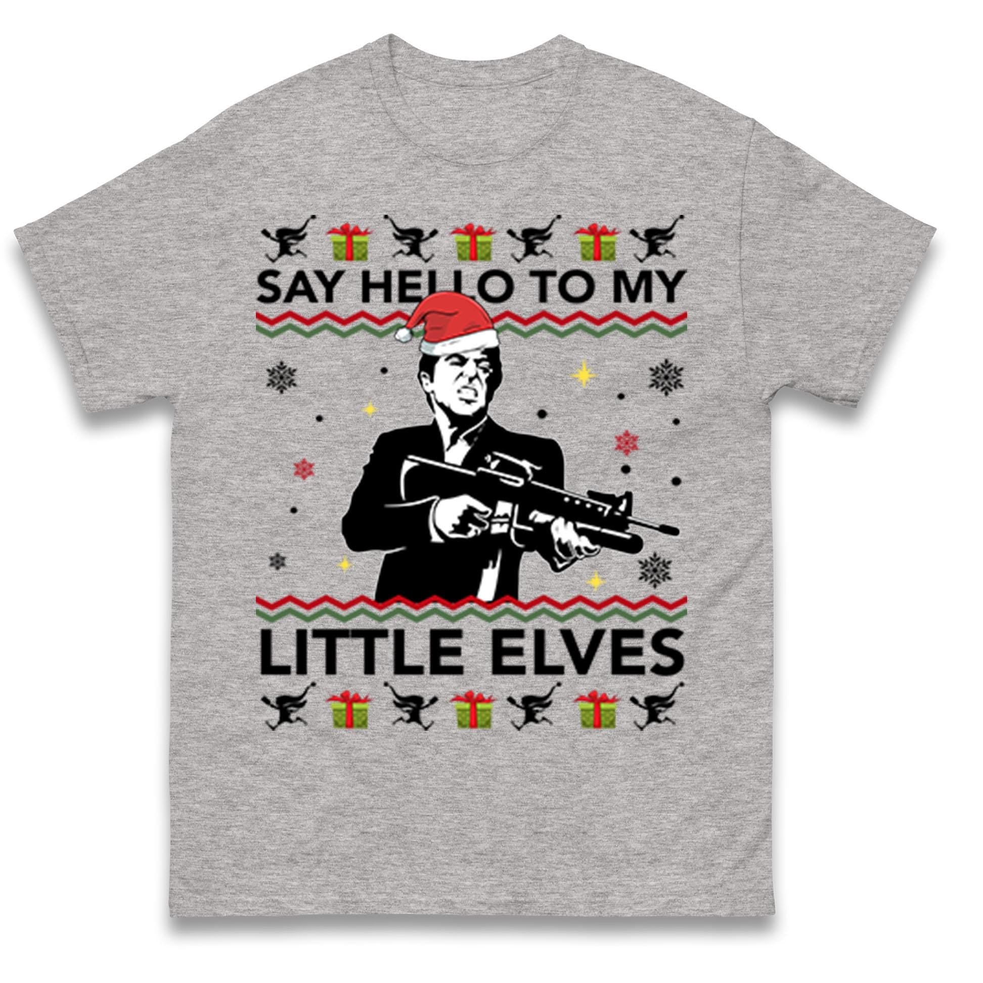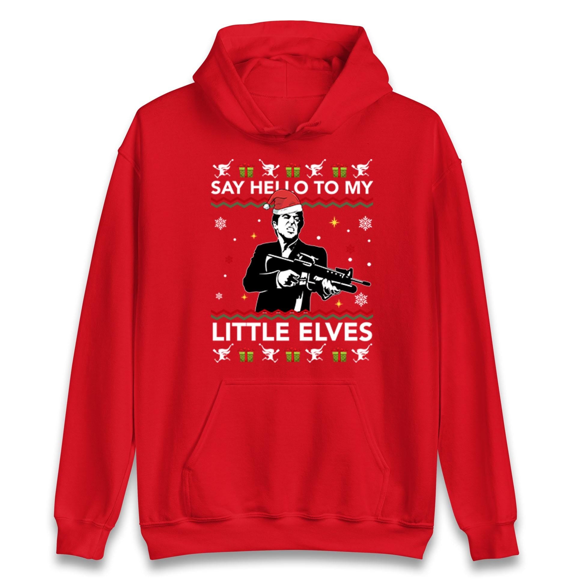 Say Hello To My Little Elves Jumper, Funny Scarface Xmas Hoodie, Cool Retro Christmas T Shirt, Humorous Holiday Movie Gift Sweatshirt