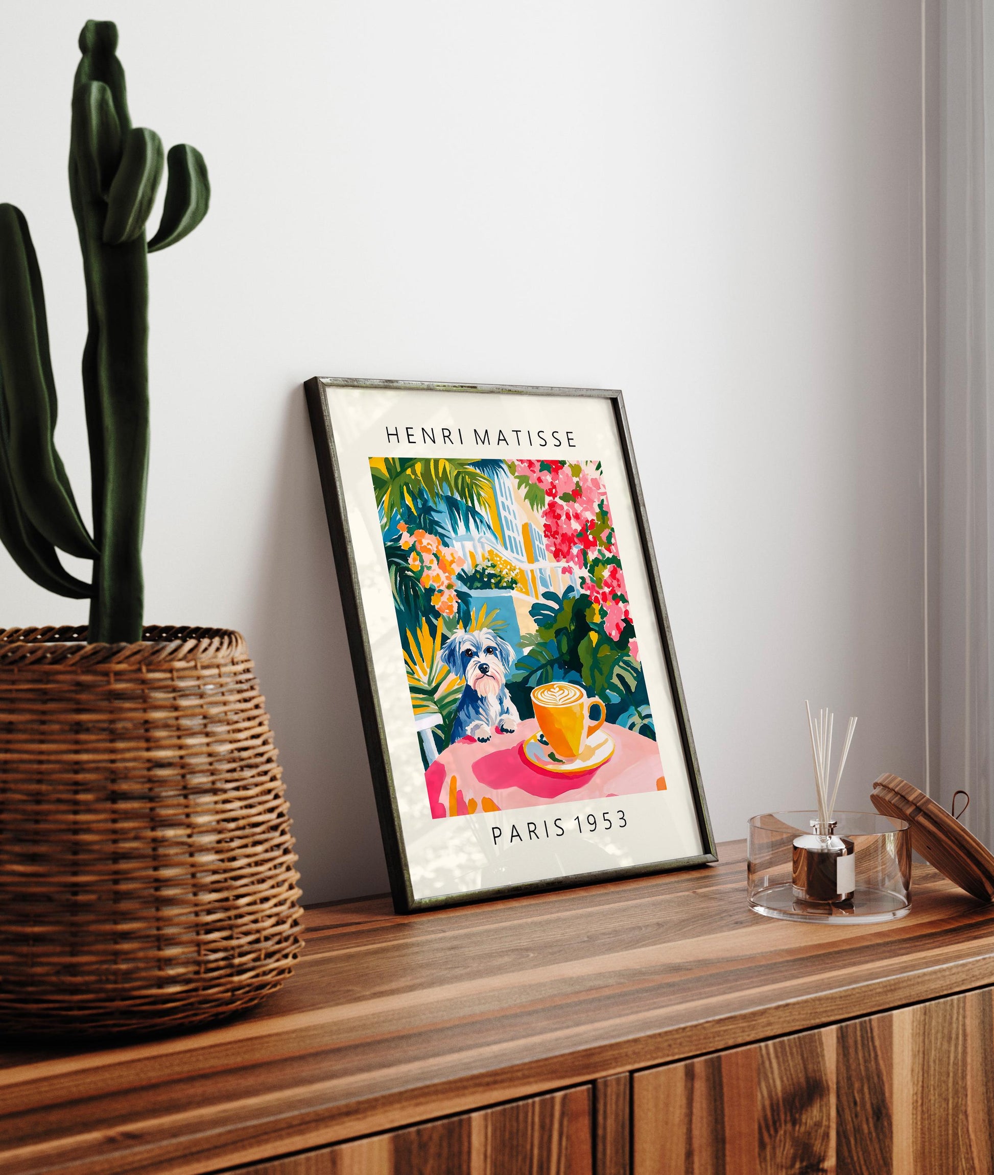 Schnauzer Coffee Print: Henri Matisse Style, Pink Kitchen Art