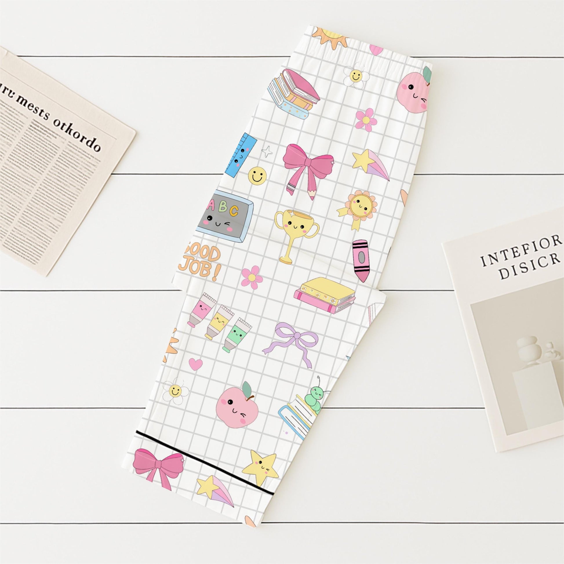 School Supplies Pajamas Set, Back To School Sleepwear, 1st Of School Pyjamas, Cute Homewear For Student, Teacher Appreciation Gift