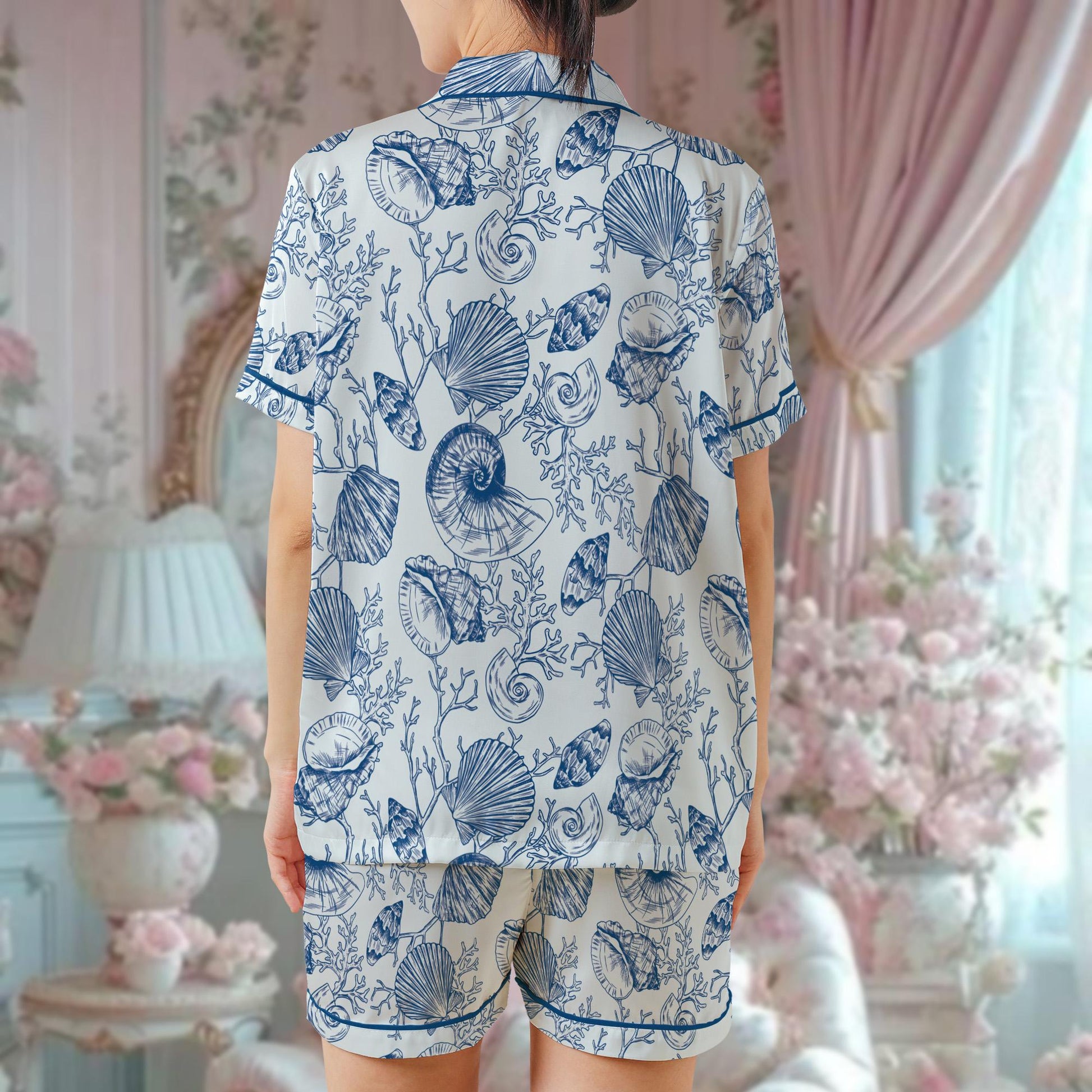 SeaShell Pajama Set, Beach Sleepwear, Ocean Lover Loungewear Set, Coquette SeaShell Pajamas, Coastal Summer Pjs, Cute Sea Animal, Aesthetic