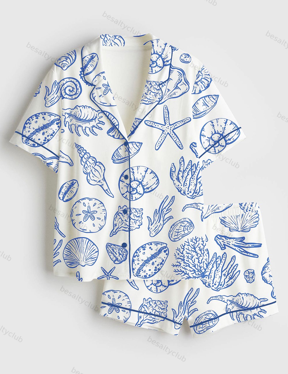 Seashells And Coastal Treasures Seaside Ocean Shell Short Sleeve Satin Pajama Set