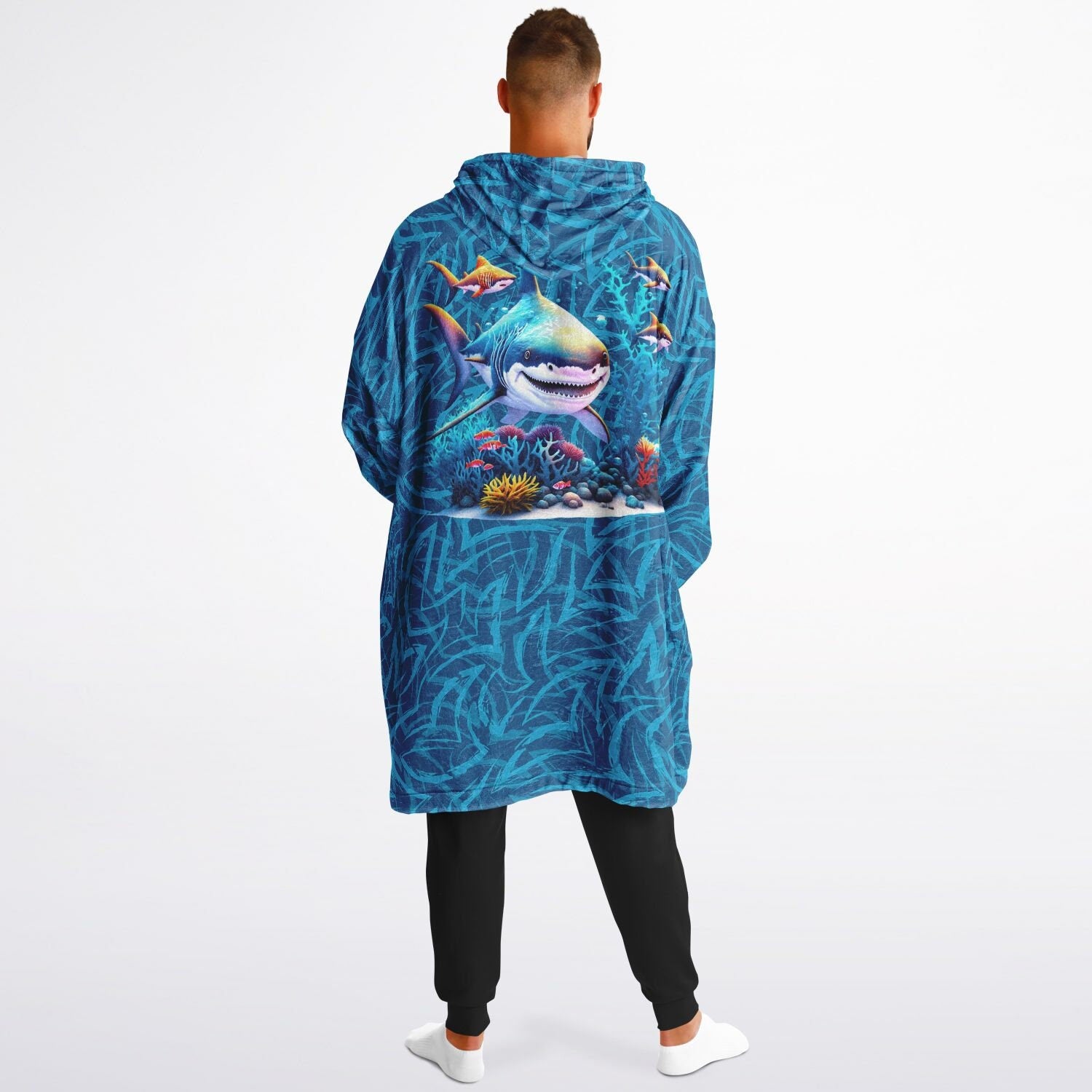 Shark Snuggle Hoodie- Microfiber Hooded Blanket Pullover Great White Shark Swimming For Your Favorite Shark Fan, Ominous Shark Warm Hoodie