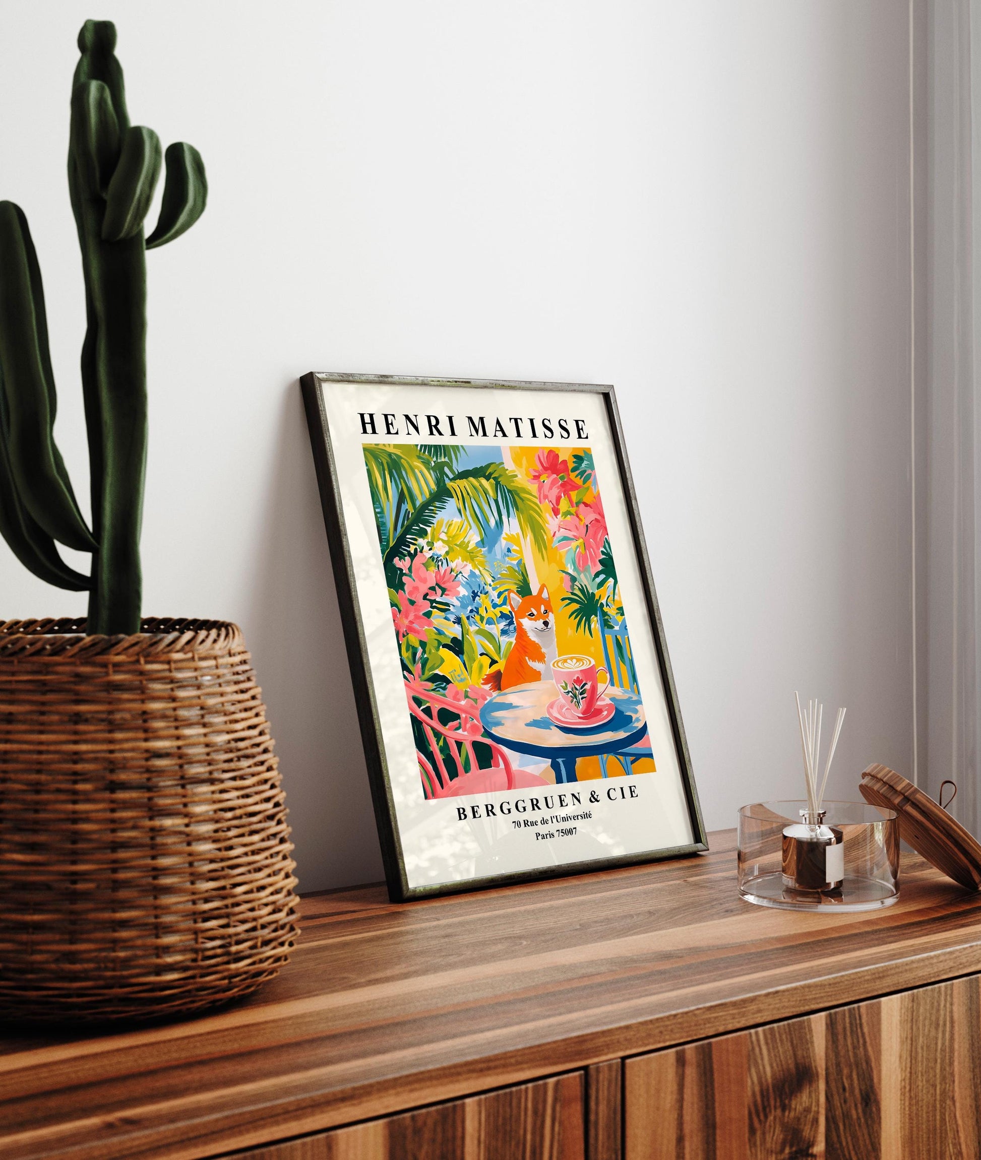 Shiba Inu Coffee Print: Matisse Style Dog Art, Dopamine Decor