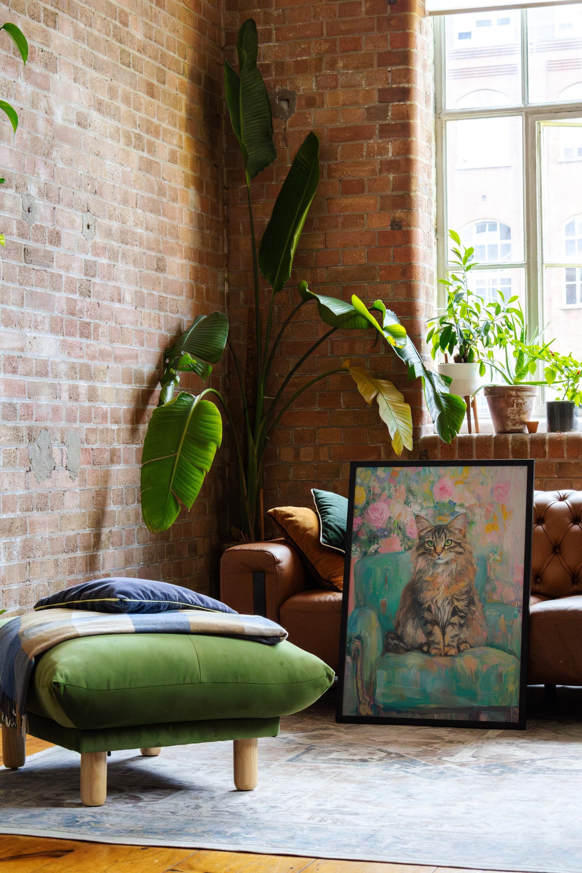 Siberian Cat Floral Art Print: Whimsical Retro Wall Decor