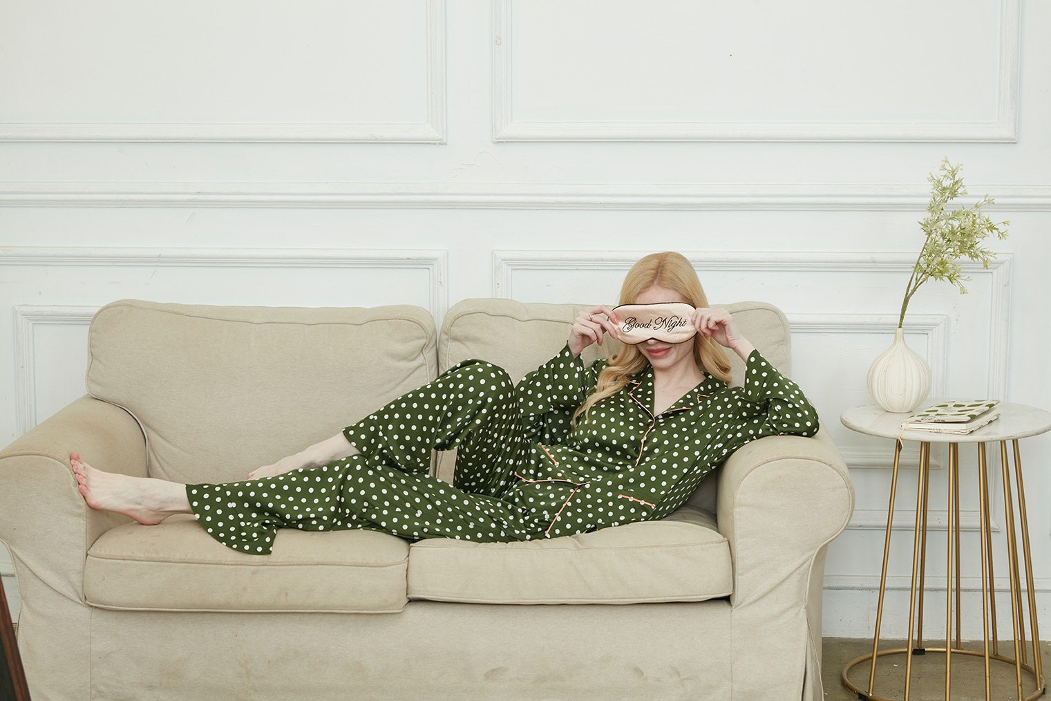 Silky Long Pyjama Set, Bride And Bridesmaids Pajama, Pajama Set For Women, Classic Polka Dot , Gift For Her, Soft Satin Pajama Set