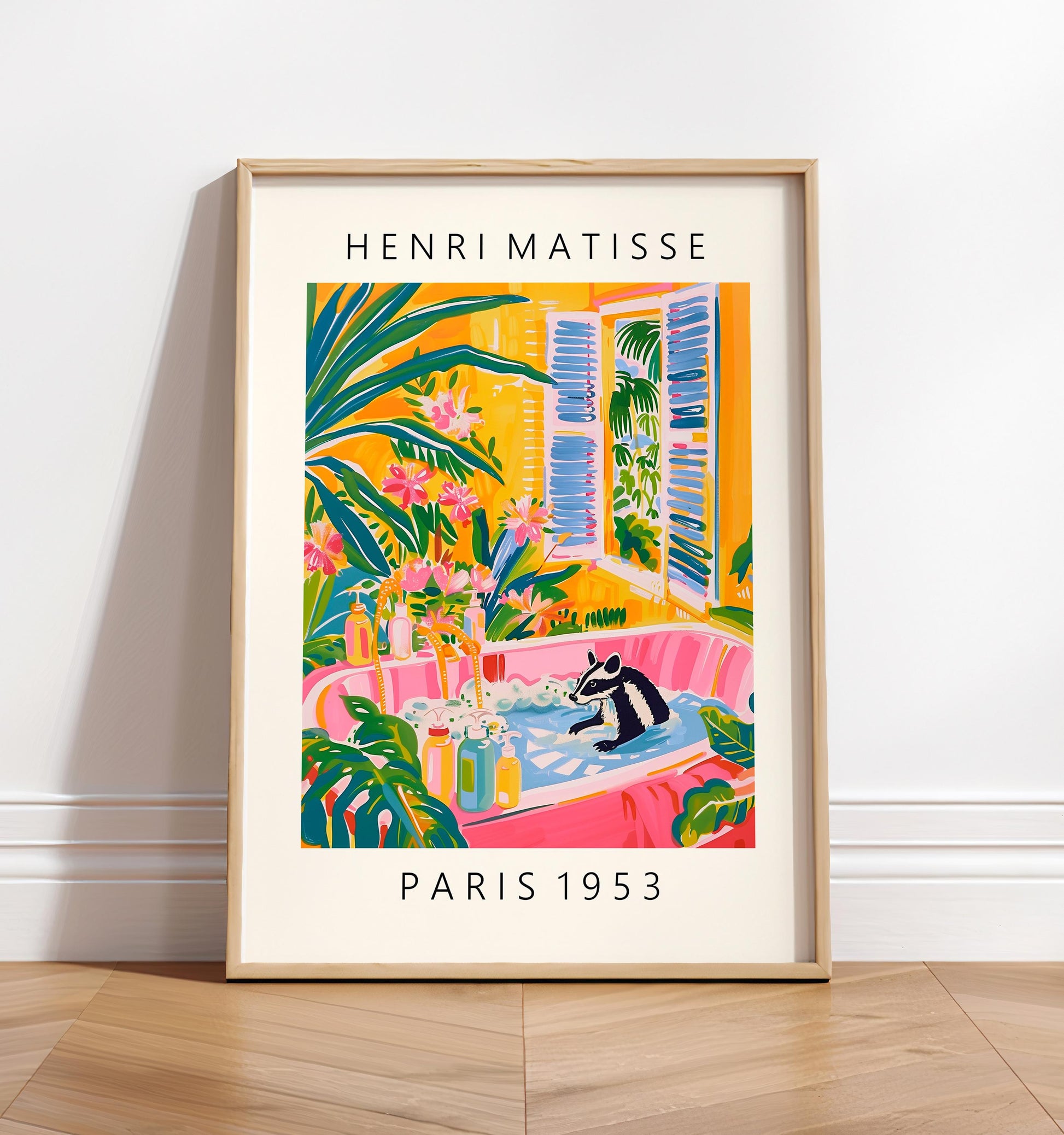 Skunk in Bathtub Art Print: Matisse Style Bathroom Decor