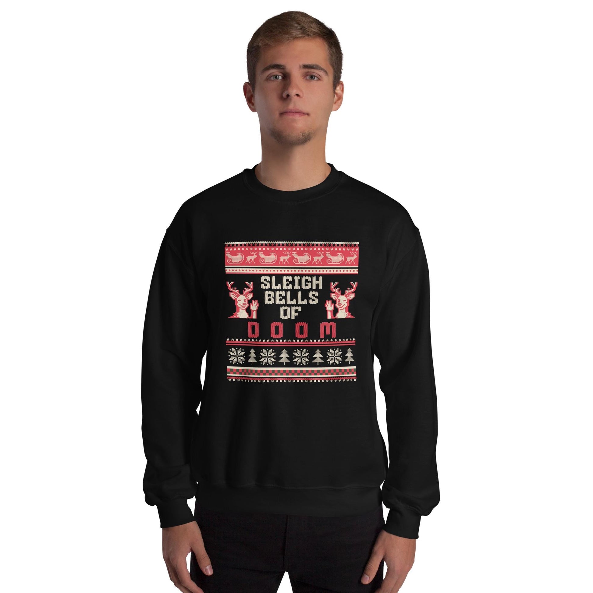 Sleigh Bells of Doom Christmas Jumper | Funny Dark Humour Xmas | Ugly Holiday Knitwear | Alternative Novelty Xmas Gift