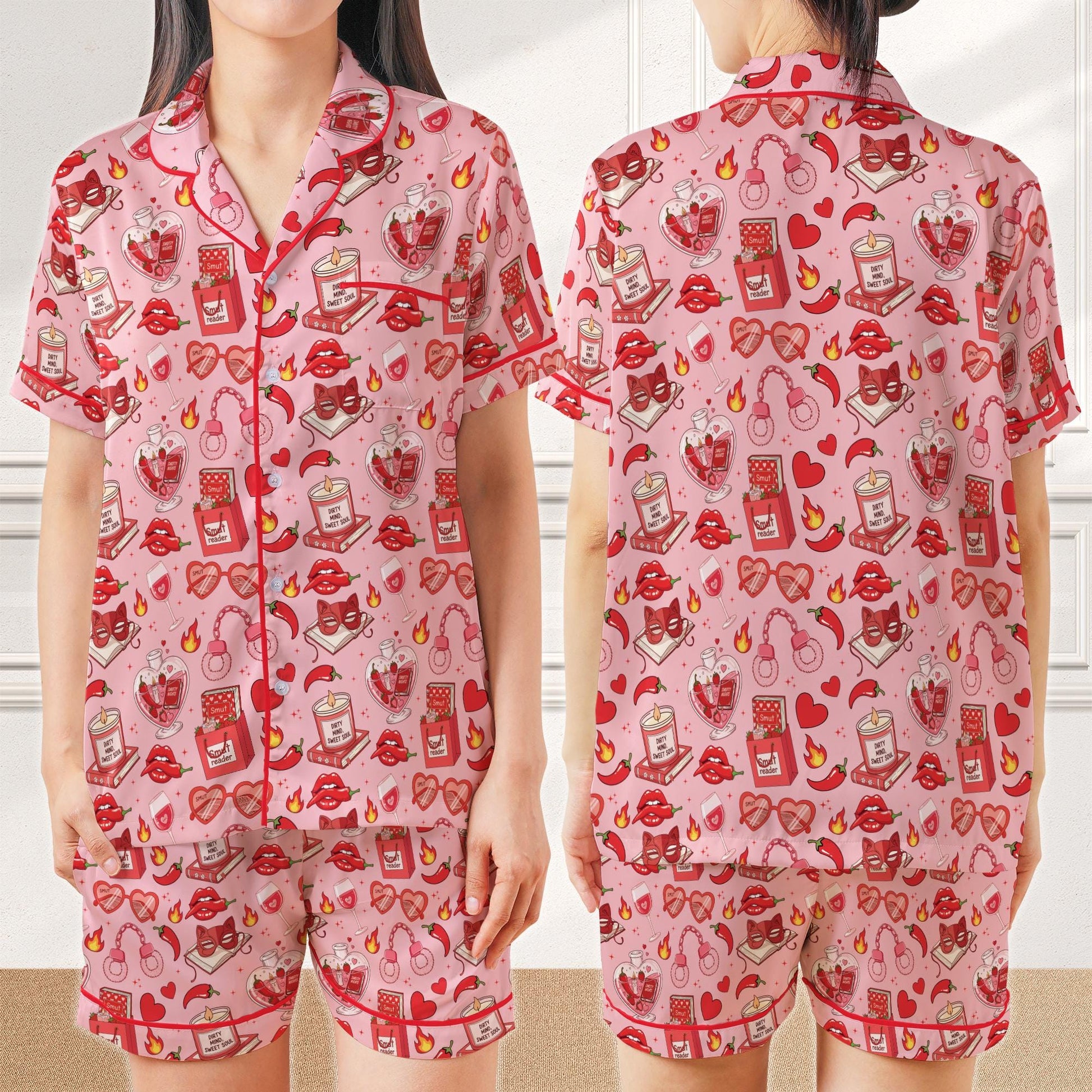 Smutty Book Lover Satin Pajamas, Funny Spicy Book Home Wear Pajamas Set, Spicy Romance Reader Gift, Smut Slut Bookish Spicy Pajamas Set