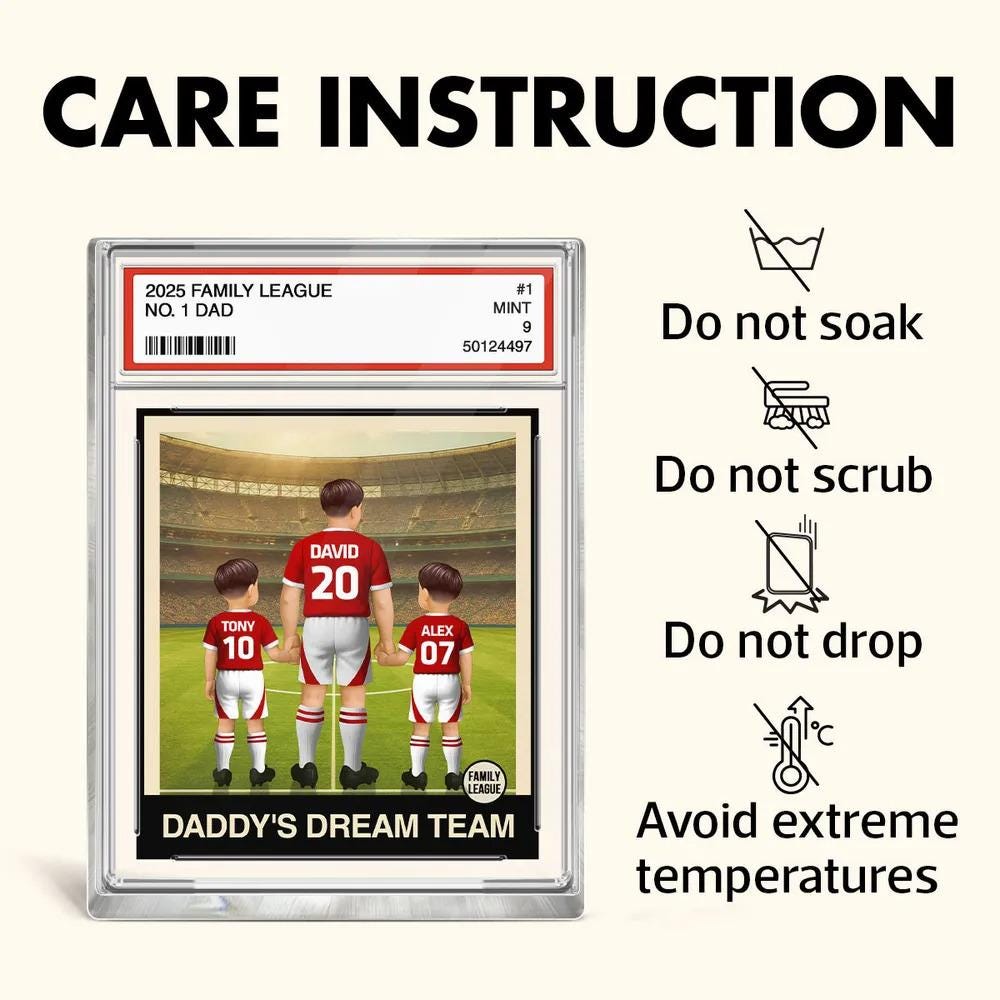 Soccer Daddy's Dream Team No. 1 Dad Man & Kids Trading Card Style Personalized Acrylic Block Plaque, Father's Day, Birthday gift for Dad