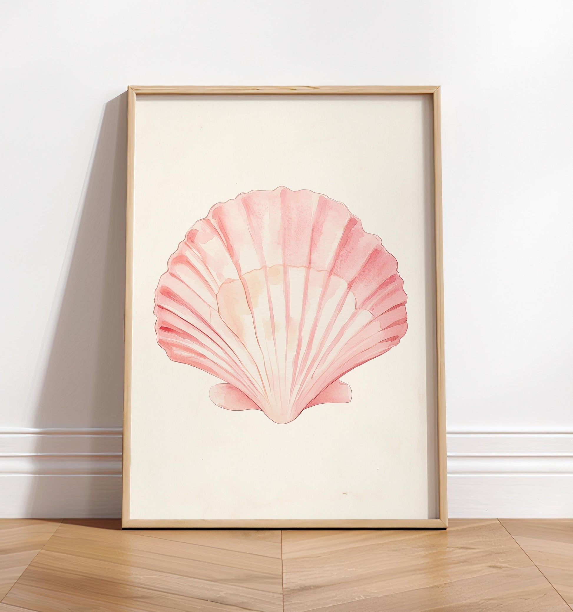 Soft pink seashell print, Beachy room decor, Ocean surf poster, Coastal granddaughter, Beach house, College coconut girl, Preppy dorm decor