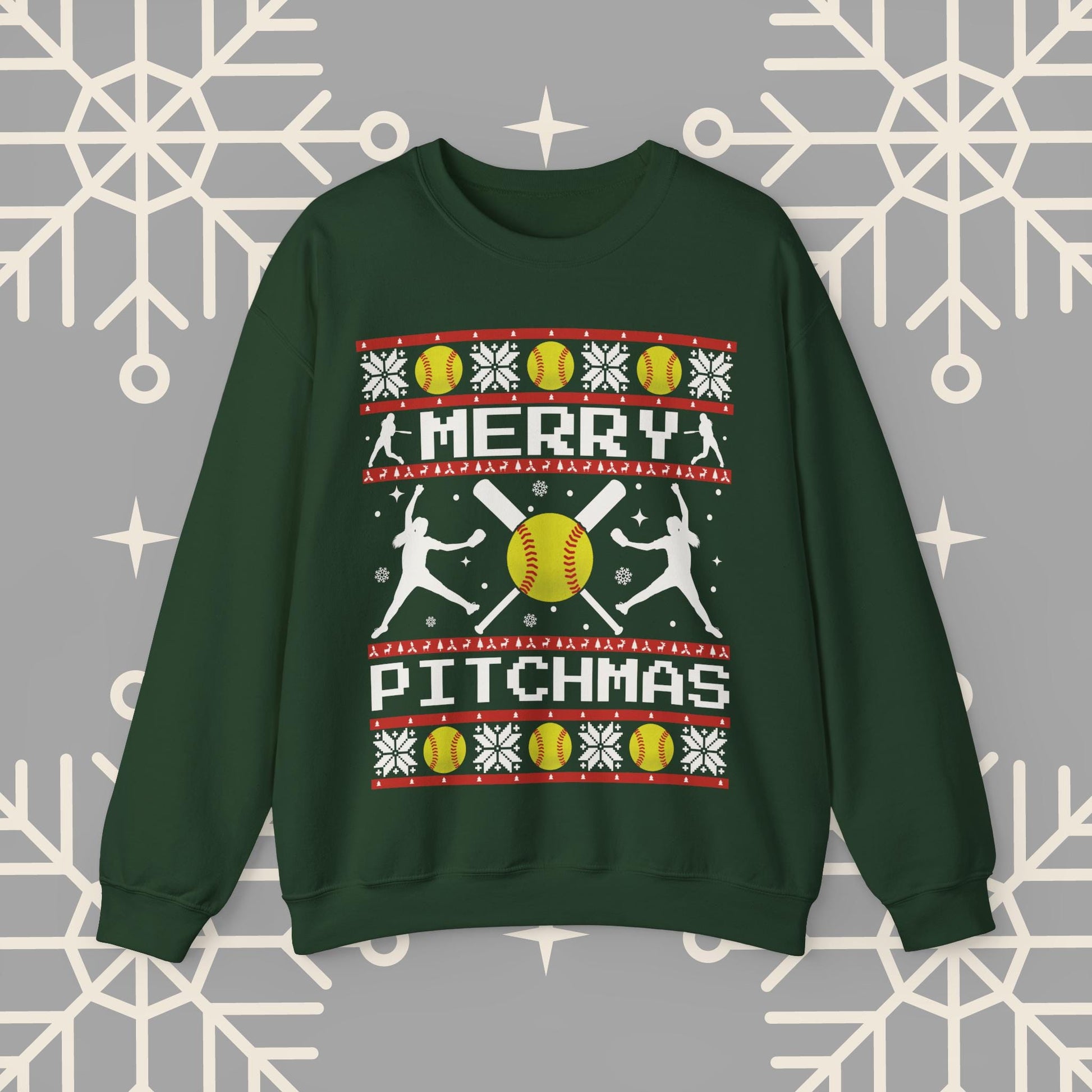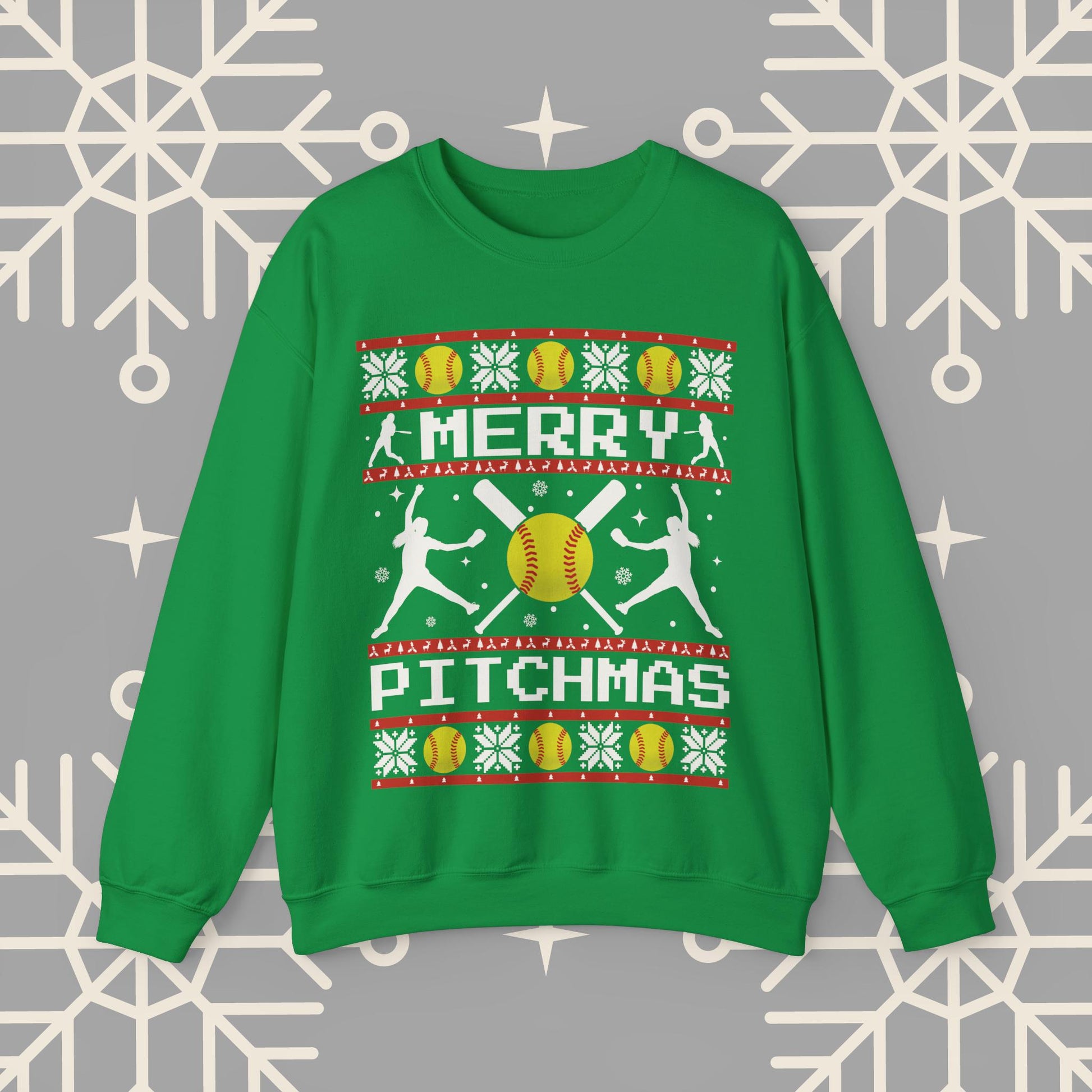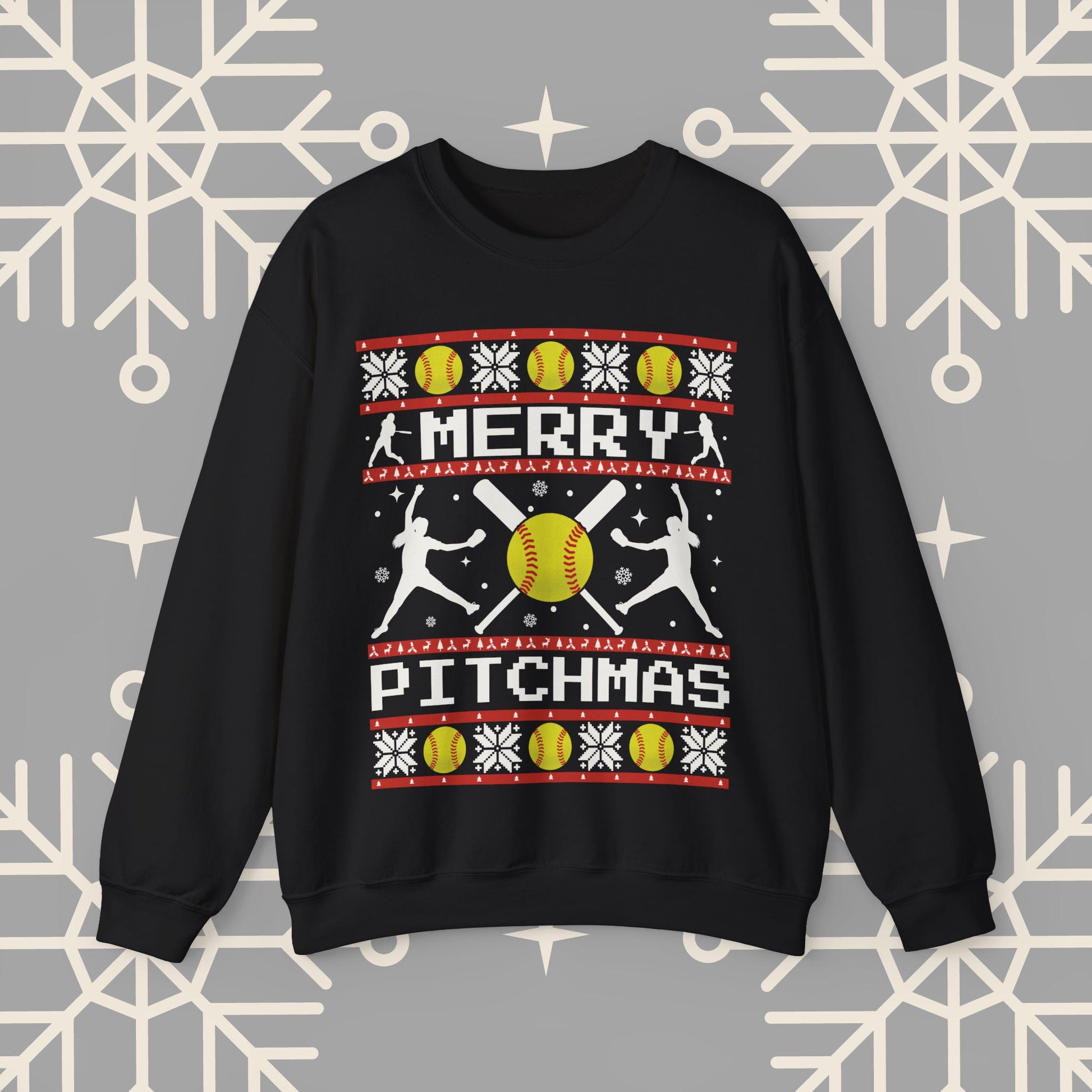 Softball Christmas Sweatshirt, Merry Pitchmas Ugly Christmas , Funny Xmas Jumper, Gift for Softball Player