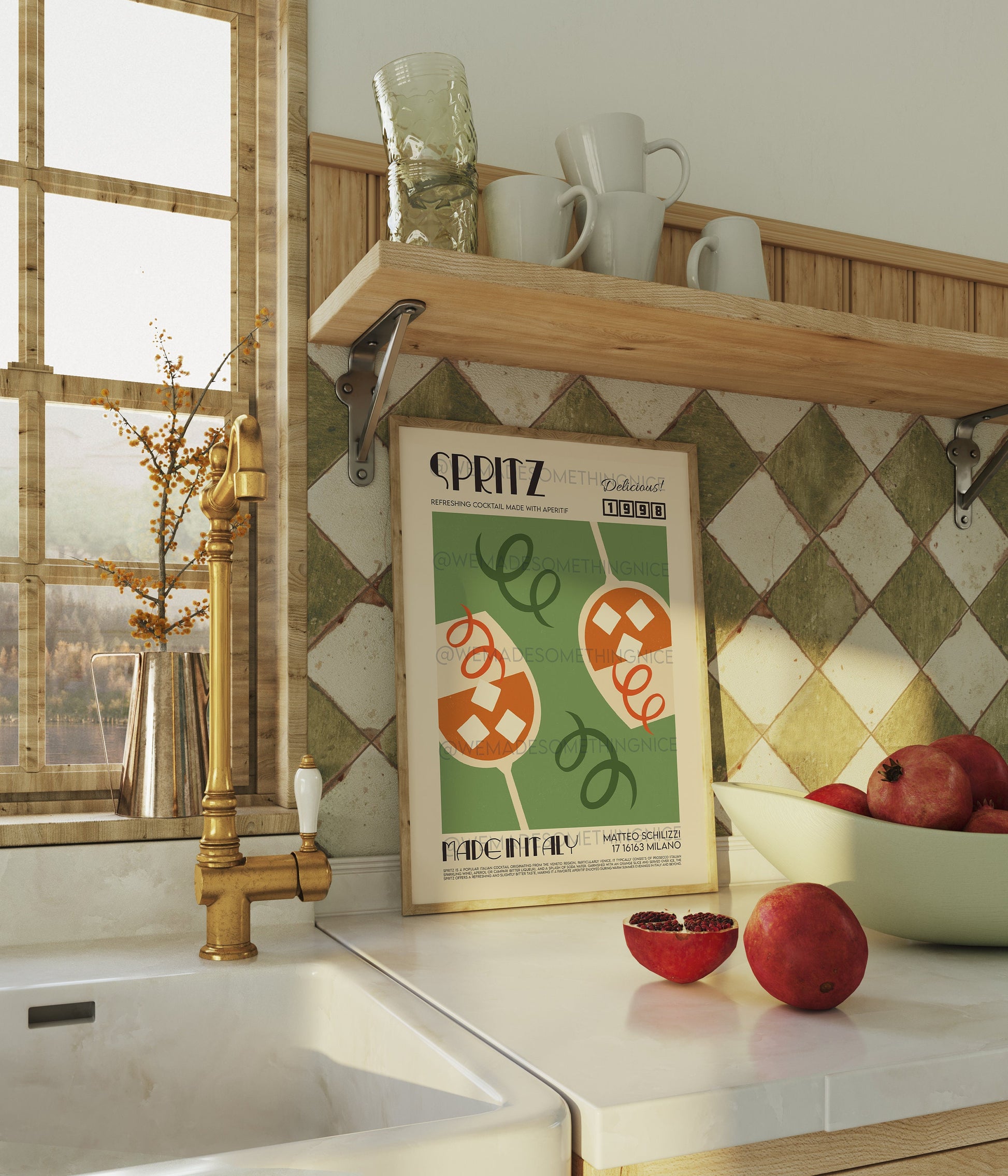 Spritz Cocktail Poster, Kitchen Poster, Kitchen Print, Retro Print, Travel Poster, Kitchen Decor, Cocktail Print, Birthday, Housewarming